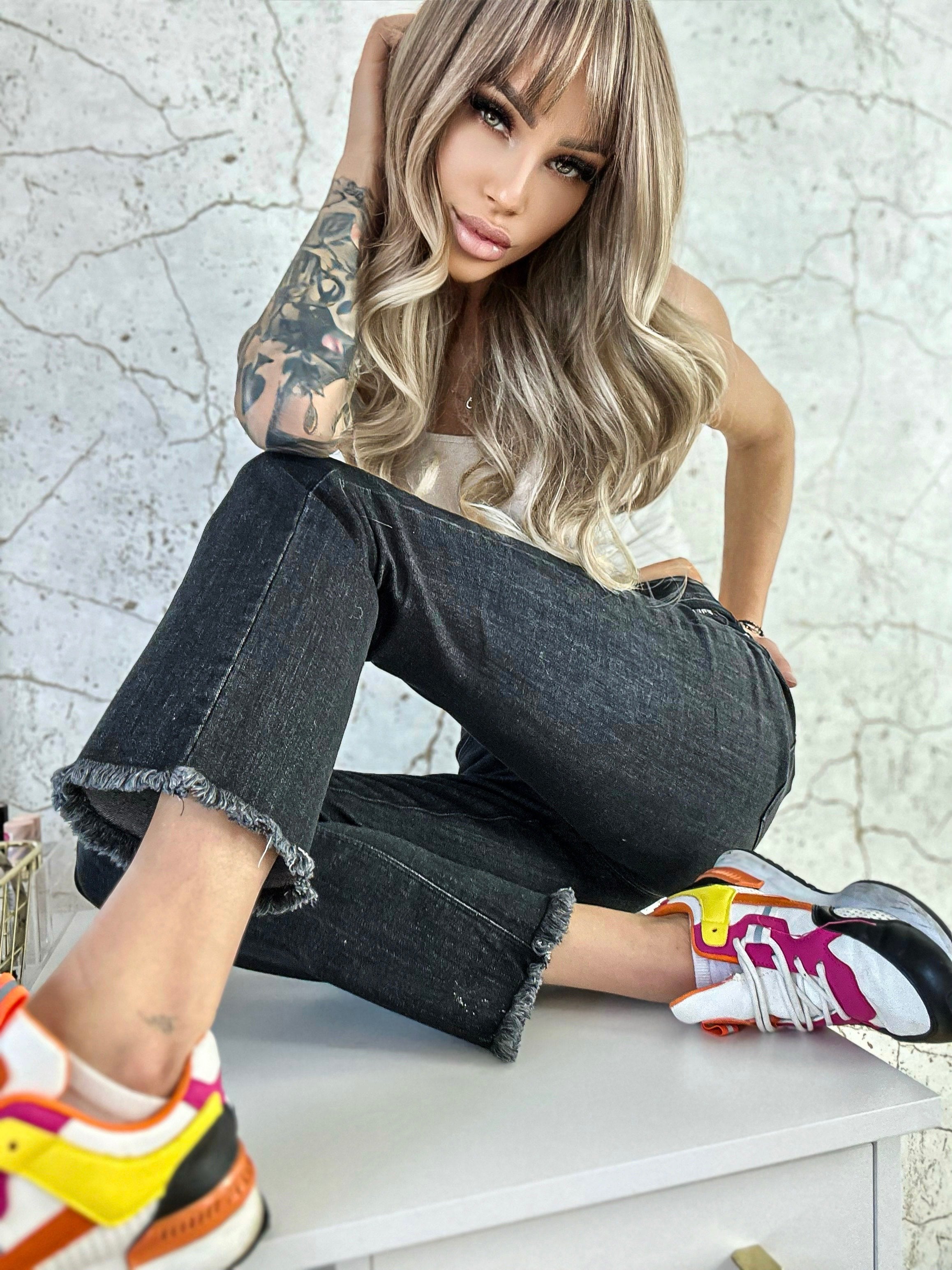 Skapad för komfort och stil: den mångsidiga Fit Jeans i Svart. I trendig croppad modell. Designade med ett stretchigt denim-effektmaterial för autentisk stil och enkel rörelse. Känn dig bekväm och se bra ut, oavsett vad dagen för med sig.