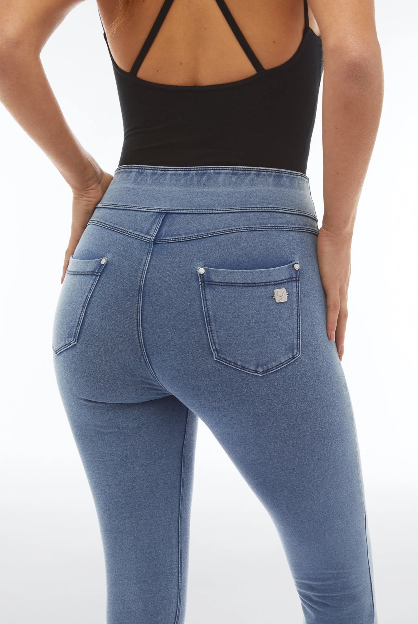 The N.O.W.® line of trousers supports your every movement without constraints thanks to the special four-way stretch, durable, denim-effect jersey fabric that facilitates movement. At the same time, it perfectly echoes the lines of the body, defining without constricting the silhouette.
