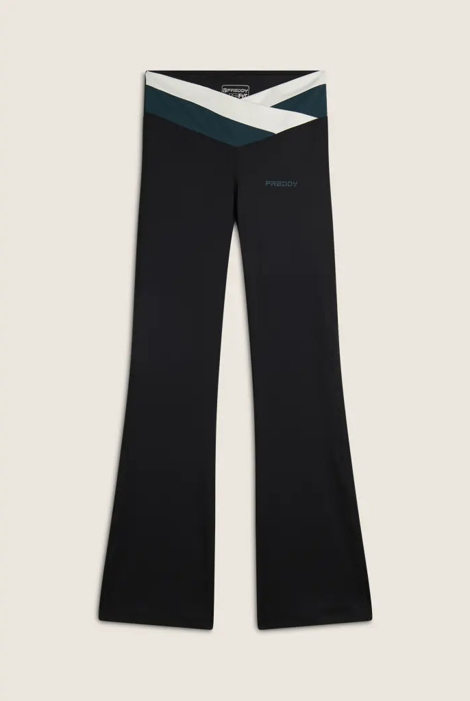 Two-tone criss-cross high waist flared leggings