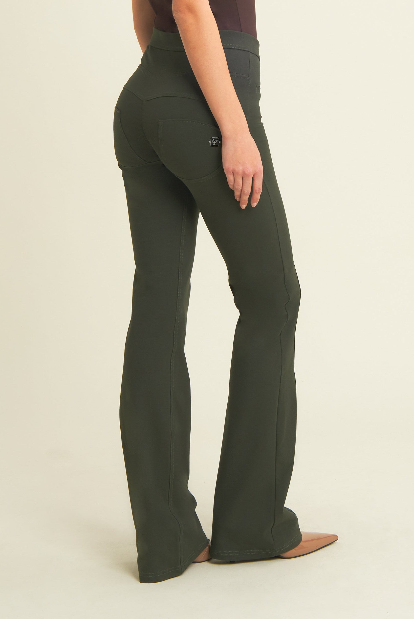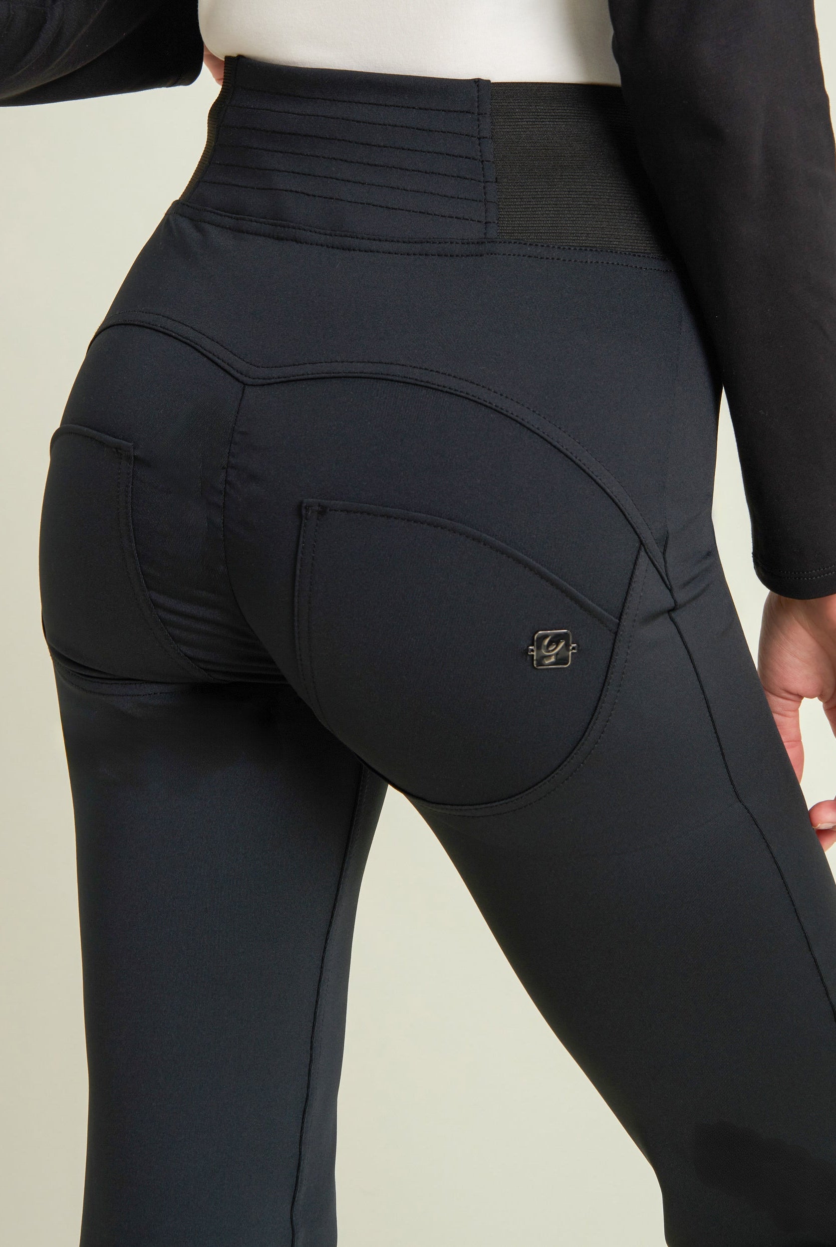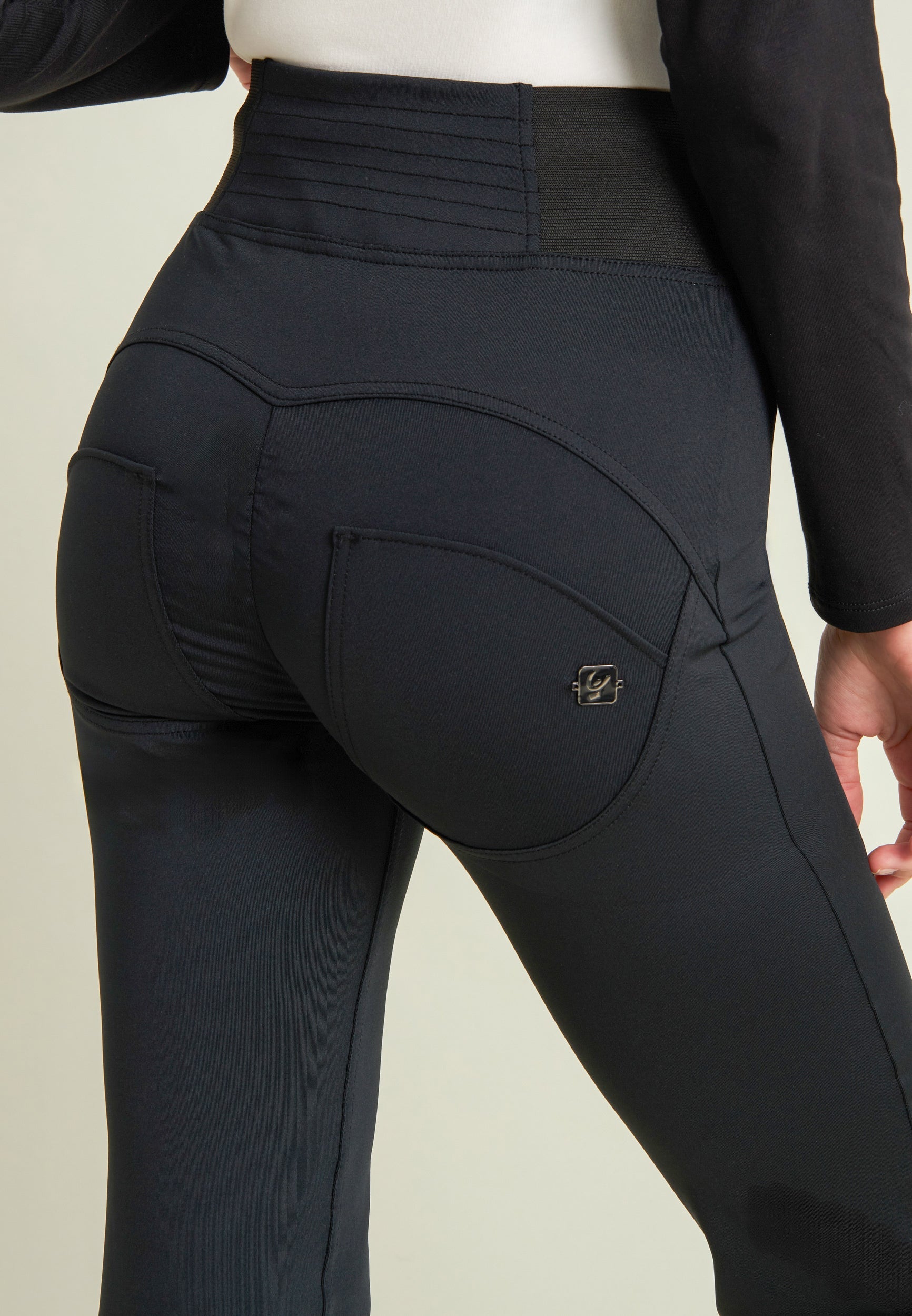 Die Mid-Waist-Modelle sitzen zwischen der Taille und dem Bauchnabel. Alle unsere mittlere Jeans haben vorne drei Freddy-typische Knöpfe. Sie sind etwas höher als unsere Regular-Waist-Hosen, aber nicht ganz so hoch, wie die High-Waist-Modelle. Sie haben einen bequemen, hohen Bund ohne Silikonstreifen, und die Knöpfe sorgen für einen perfekten Sitz. Jeans in Mid Waist eignen sich vor allem für kurvigere Frauen, die mehr Stütze und Form für den Bauch und die Taille möchten. Zusätzlich zaubern die Hosen natürlich den perfekten Po.
