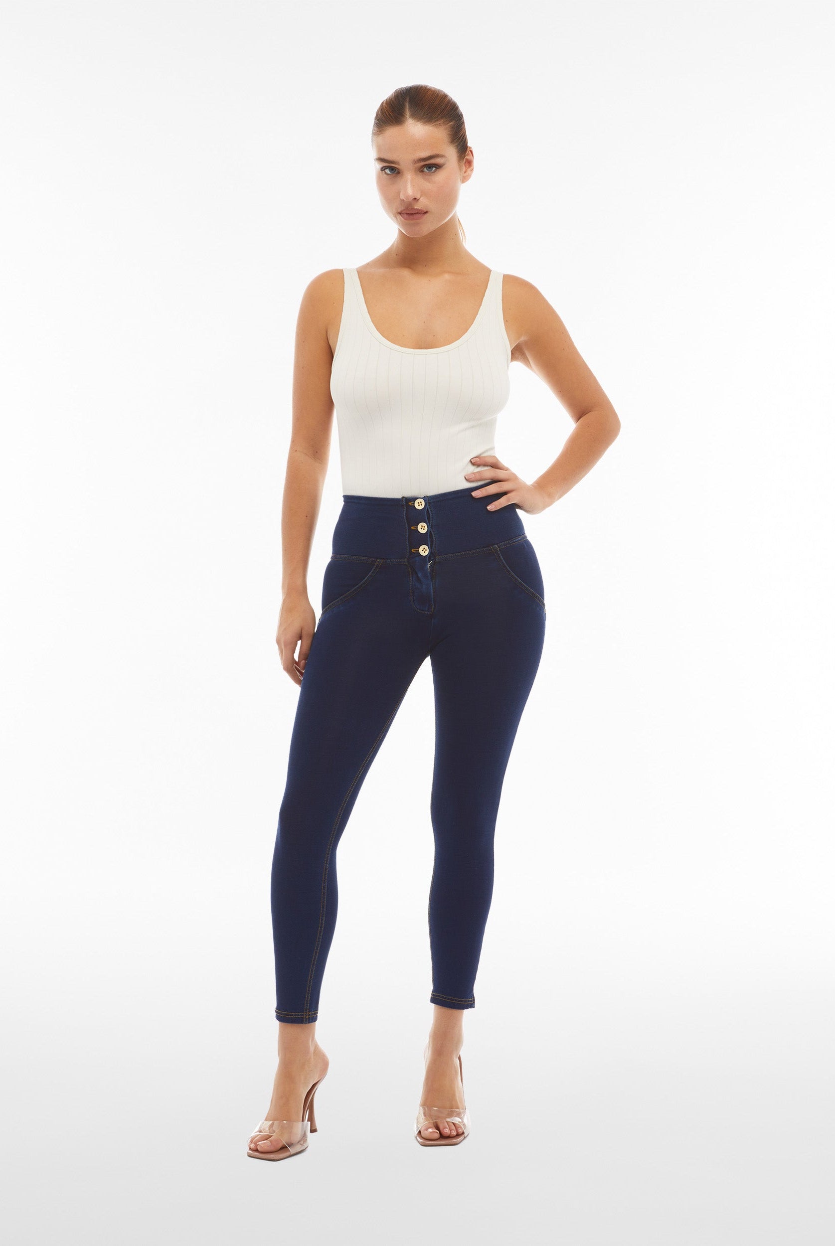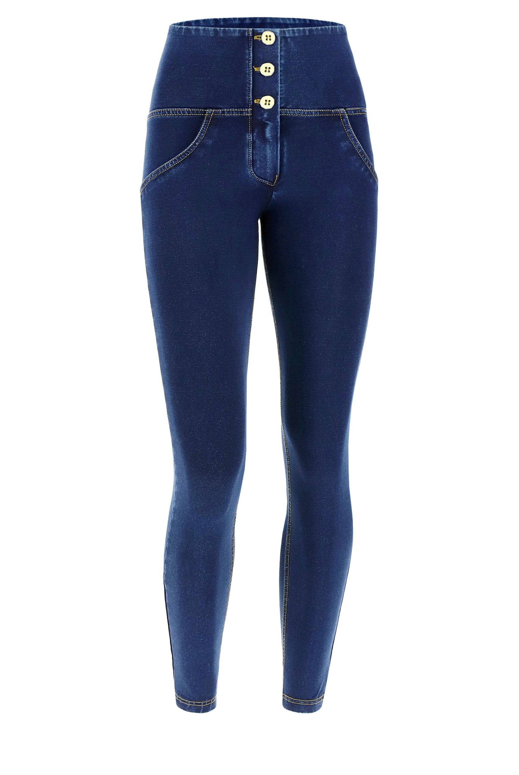 Hosen in Denim-Optik kombinieren den Stil von Push up Jeans mit dem Komfort von Leggings. Unsere Denims sitzen wirklich wie eine zweite Haut und betonen dabei deine natürlichen Kurven. Obwohl diese Jeggings wie echte Jeans aussehen, sind sie extrem elastisch und genauso bequem wie deine Lieblingsleggings. Dank des Silikonbundes an der Taille rutscht die Hose nicht, und du brauchst keinen Gürtel. Eine Jeanshose ist eine echte Alleskönnerin, die du immer und überall tragen kannst. Wir bieten unsere Denims in zahlreichen Farben und mit unterschiedlichen Details, so dass du genau den perfekten Style für dich findest. Ob in voller Beinlänge oder Knöchellänge, mit hoher oder niedriger Leibhöhe, Freddys sitzen immer perfekt!