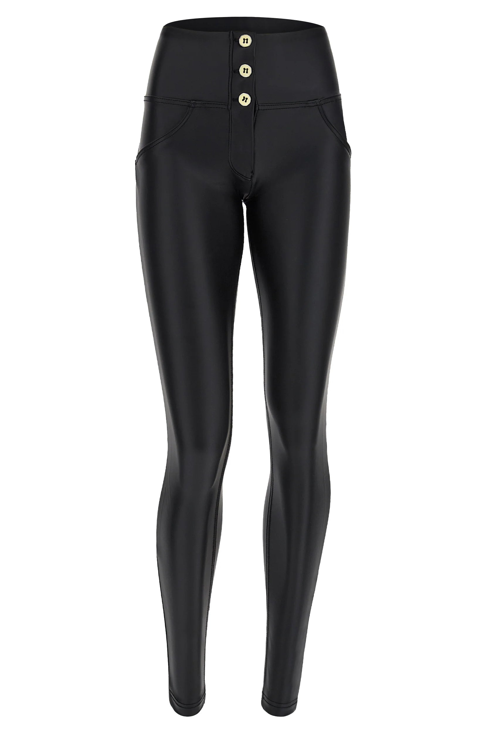 Eine knackig enge Lederhose ist eine sehr gute Anschaffung, die das gewisse Etwas in dein Outfit bringt. Unsere Ecolederhosen werden aus elastischem Kunstleder hergestellt, und sie sind gleichzeitig absolut sexy und bequem. Geht das? Na klar – mit Freddy! Kombiniere die leicht glänzende Lederleggings mit High Heels und einem Top zu einem schicken Party-Outfit, oder mit Slippern und T-Shirt zu einem coolen und trendigen Look.