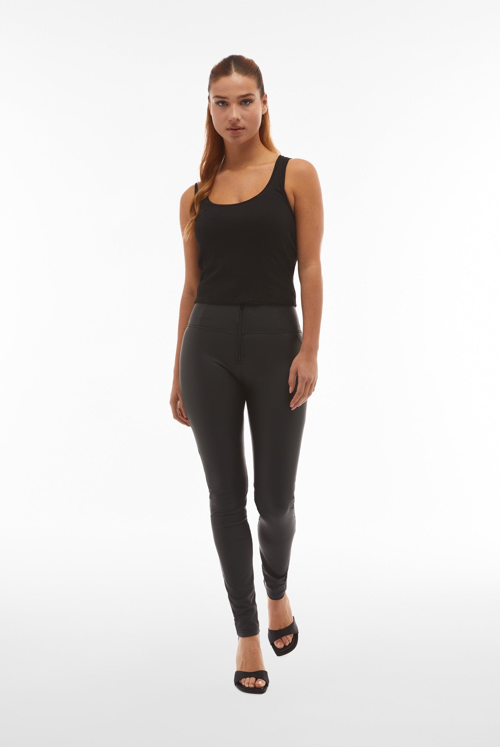 Eine knackig enge Lederhose ist eine sehr gute Anschaffung, die das gewisse Etwas in dein Outfit bringt. Unsere Ecolederhosen werden aus elastischem Kunstleder hergestellt, und sie sind gleichzeitig absolut sexy und bequem. Geht das? Na klar – mit Freddy! Kombiniere die leicht glänzende Lederleggings mit High Heels und einem Top zu einem schicken Party-Outfit, oder mit Slippern und T-Shirt zu einem coolen und trendigen Look.