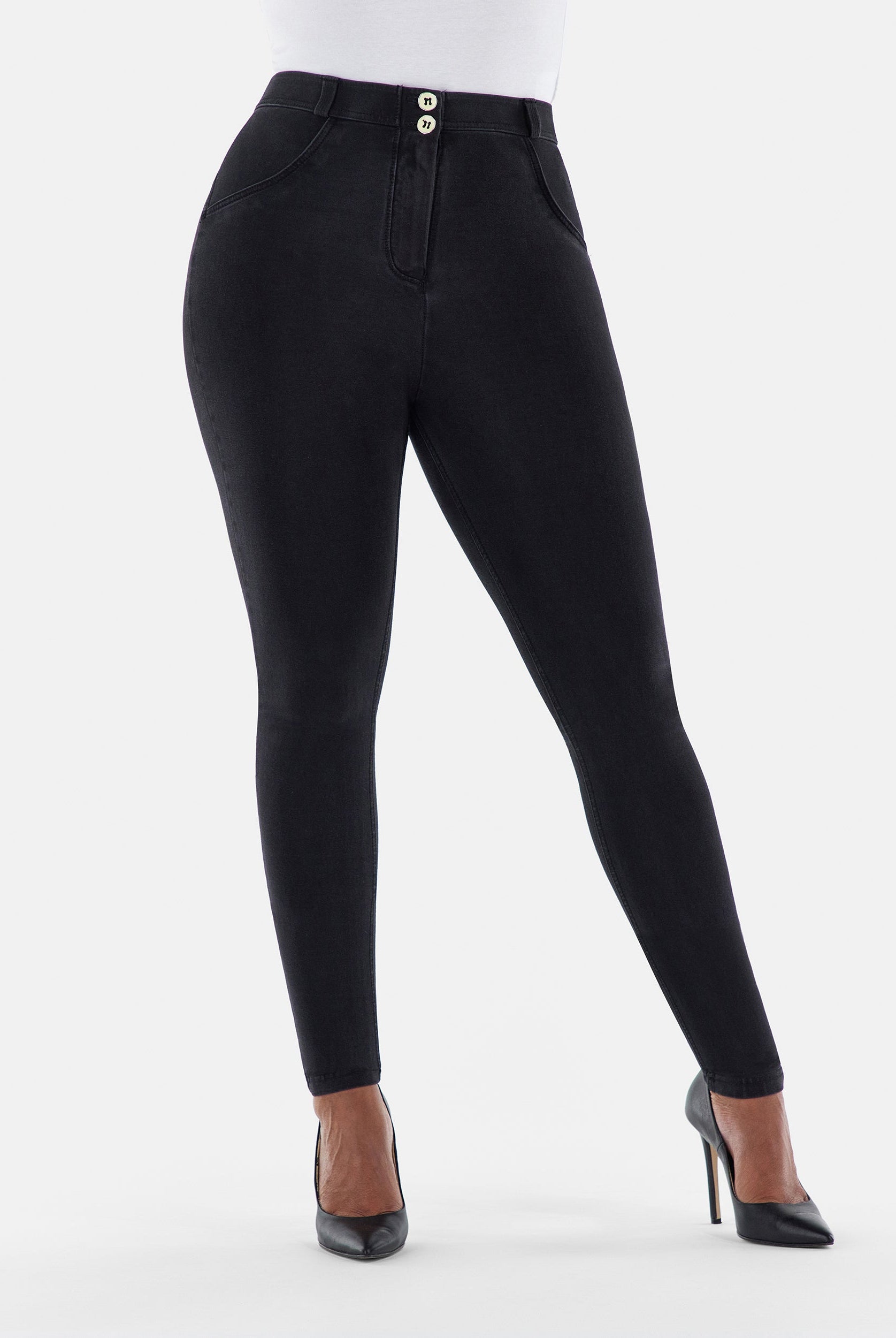 Hosen in Denim-Optik kombinieren den Stil von Push up Jeans mit dem Komfort von Leggings. Unsere Denims sitzen wirklich wie eine zweite Haut und betonen dabei deine natürlichen Kurven. Obwohl diese Jeggings wie echte Jeans aussehen, sind sie extrem elastisch und genauso bequem wie deine Lieblingsleggings. Dank des Silikonbundes an der Taille rutscht die Hose nicht, und du brauchst keinen Gürtel. Eine Jeanshose ist eine echte Alleskönnerin, die du immer und überall tragen kannst. Wir bieten unsere Denims in zahlreichen Farben und mit unterschiedlichen Details, so dass du genau den perfekten Style für dich findest. Ob in voller Beinlänge oder Knöchellänge, mit hoher oder niedriger Leibhöhe, Freddys sitzen immer perfekt!