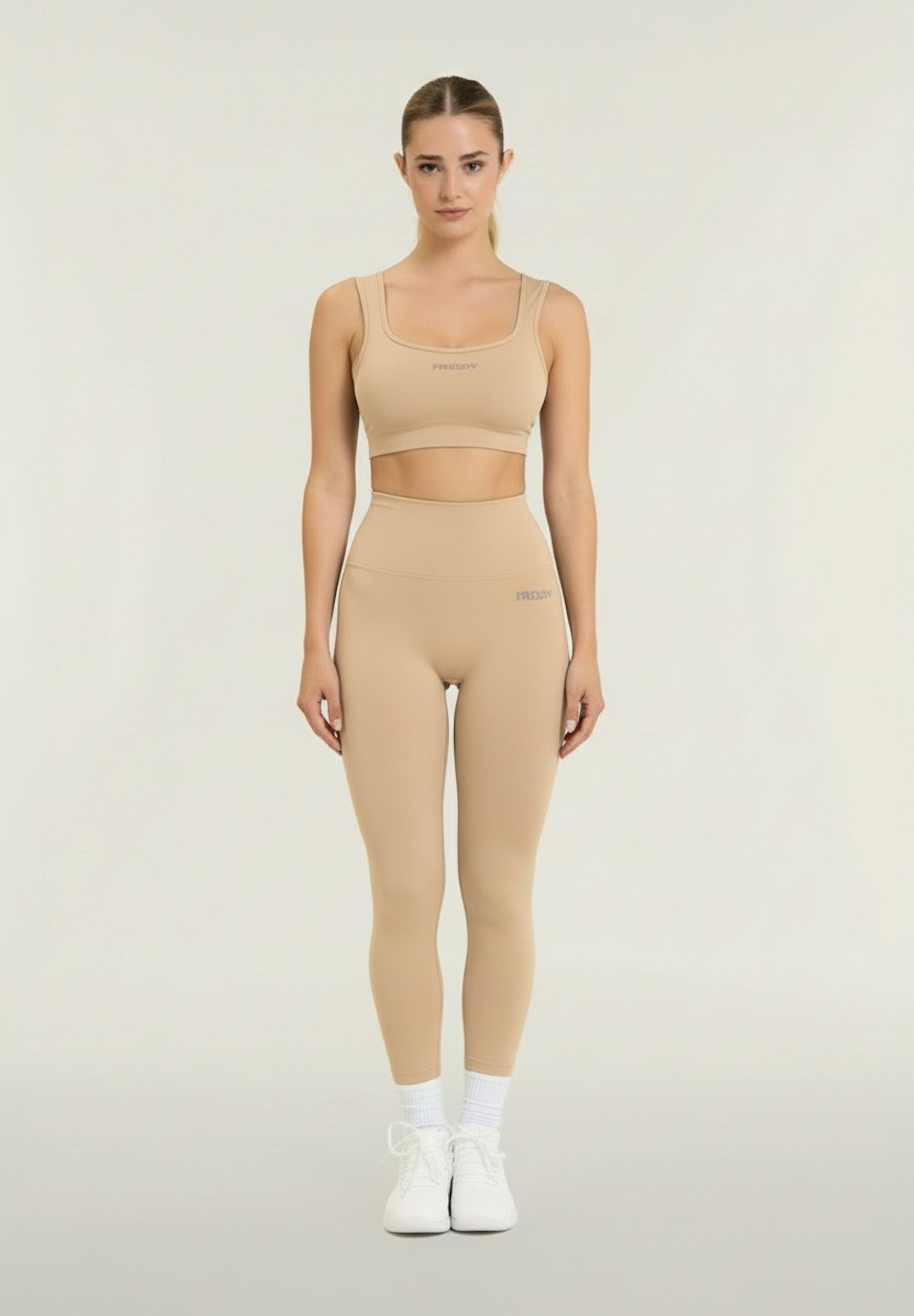 Sports leggings with 7/8 length and skinny leg, made from seamless ribbed fabric for absolute comfort. The very high waist guarantees a stable hold during training, while the heart-shaped seams on the buttocks naturally enhance the shape. Finished with a FREDDY logo on the front and “small man” logo on the back.