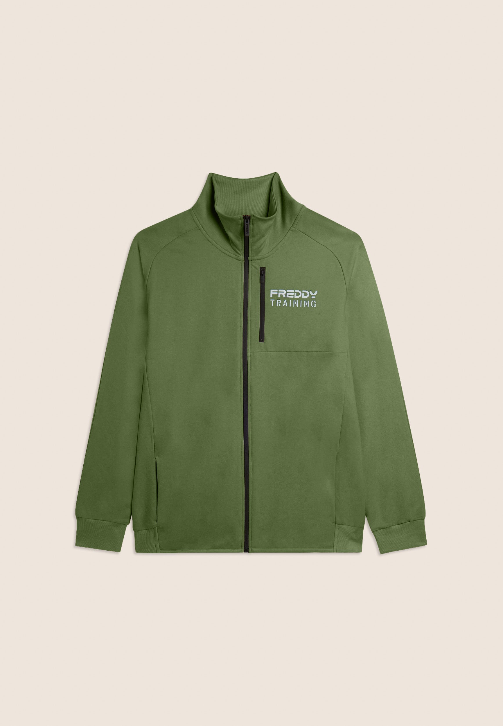 Regular-fit full-zip sweatshirt, perfect for outdoor activities and leisure time. It features a high neck with a ribbed interior, a straight front hem and a ribbed band at the back for a balanced fit. Long sleeves with ribbed cuffs ensure comfortable movement. The innovatively designed shoulder seams provide a dynamic touch. The rubberised 'FREDDY TRAINING' print on the heart adds personality to the garment. The front besom pockets are positioned along the seams for aesthetic cleanliness, and the zipped breast pocket offers extra practicality. Made of baby French Terry.