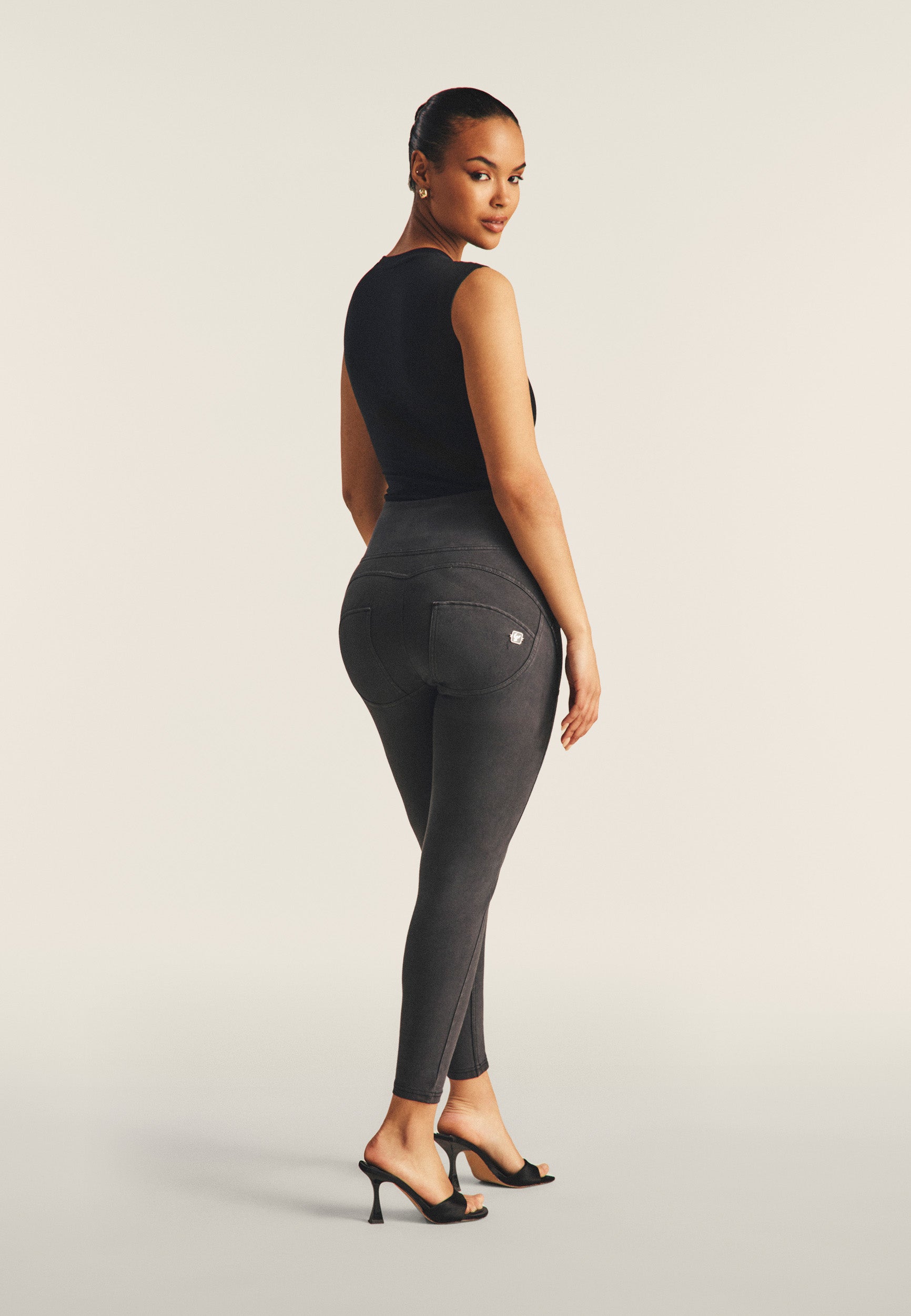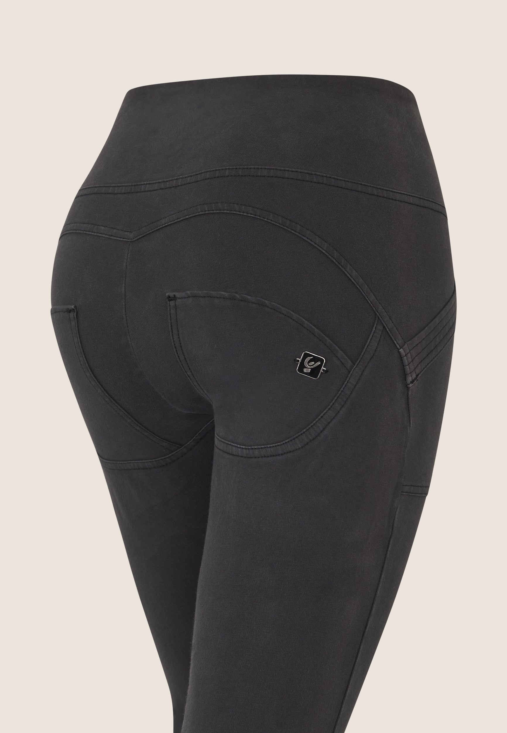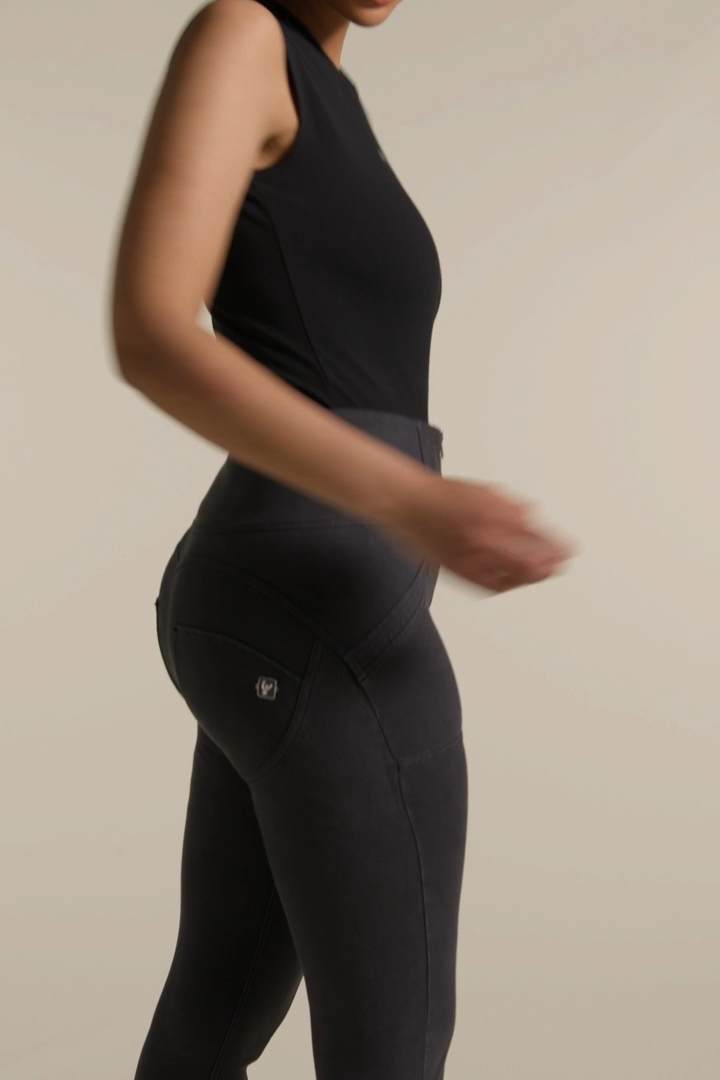Organic cotton WR.UP® trousers with pigment dyed treatment for a unique, worn-in effect. The zipped high waist and super-skinny 7/8 fit to the ankle ensure a sophisticated and original look. The decorative stitching in the centre of the legs slims the figure, while the patented WR.UP technology naturally emphasises your shape. Decorative enamel tab detail on the left back pocket.