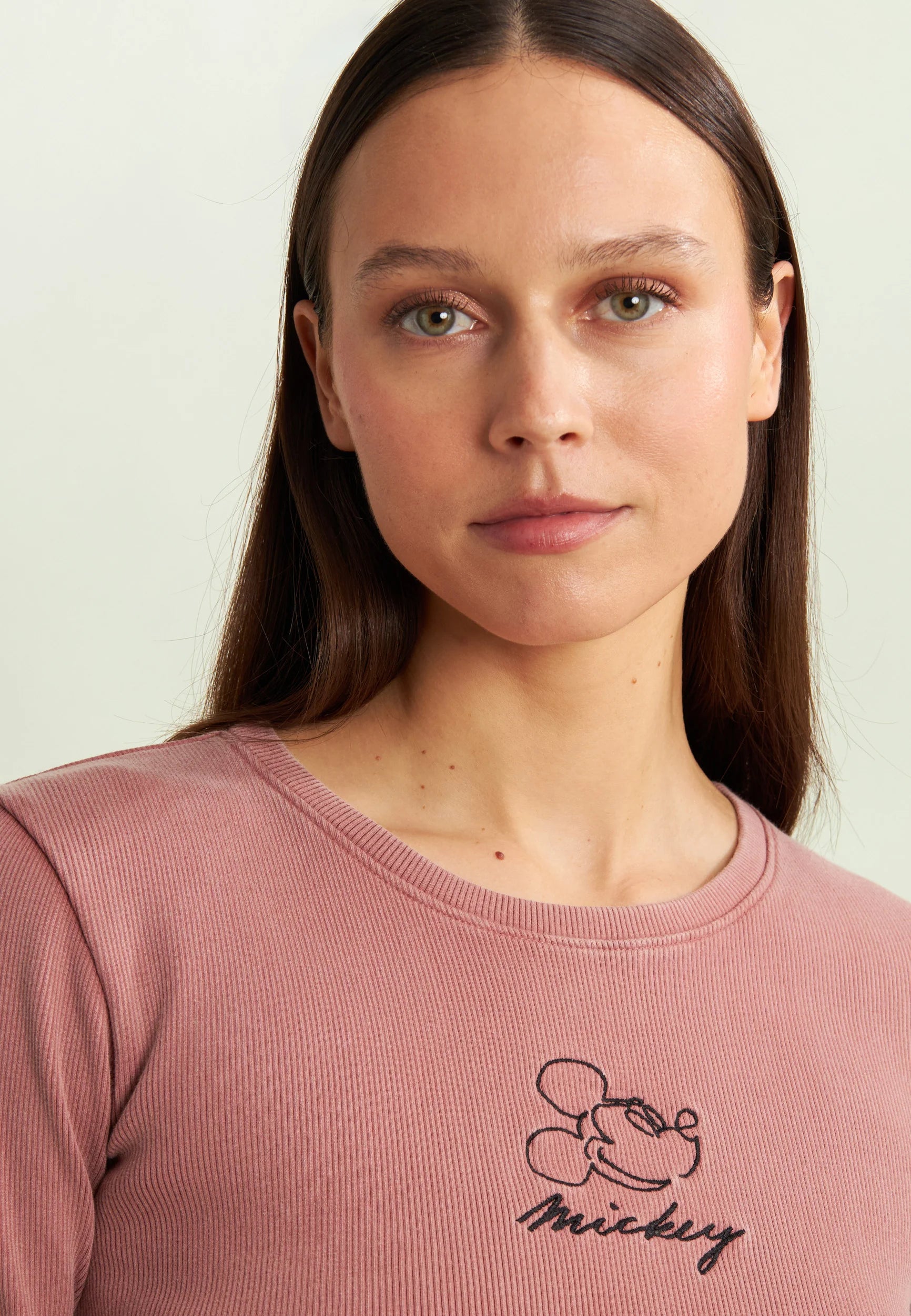 Women's long-sleeved cropped T-shirt with Disney embroidery