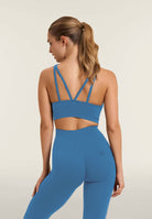 Medium support sports bra with removable moulded cups, ideal for daily training. The cut is designed to offer support and style: round neckline, regular shoulder straps crossed at the back, and side inserts in herringbone textured fabric. The nylon jersey fabric is breathable and durable.