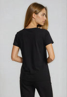 Short sleeve t-shirt with cut out detail and rhinestones - Black