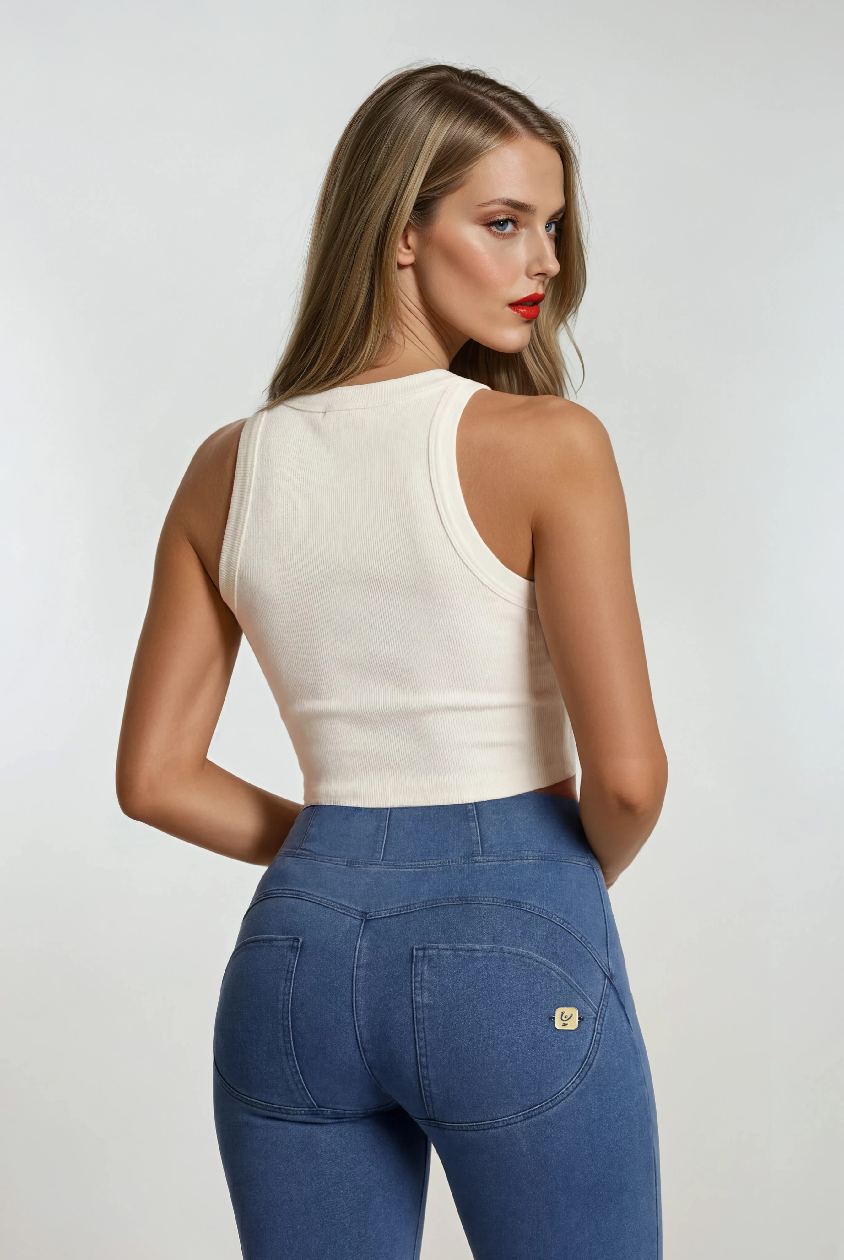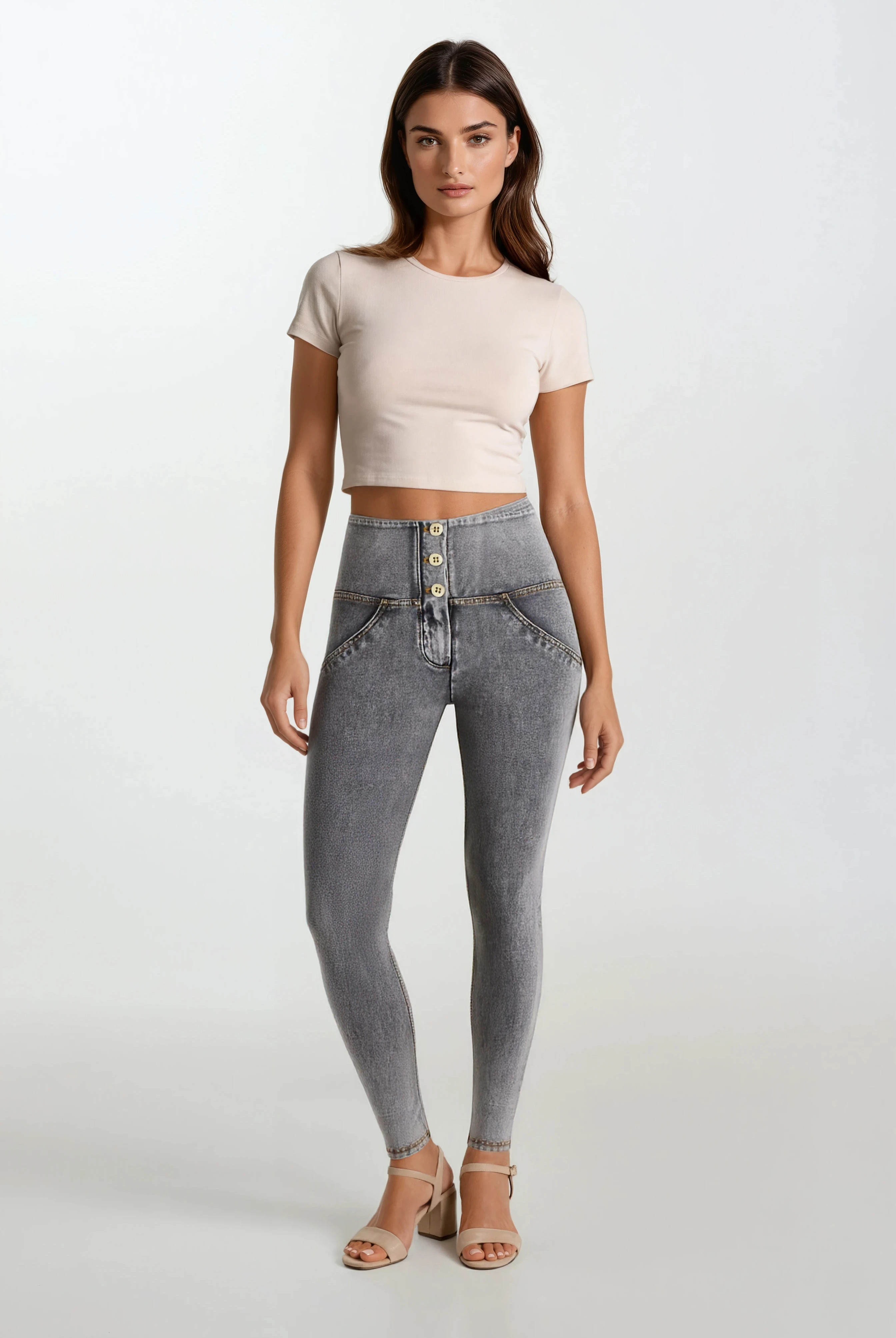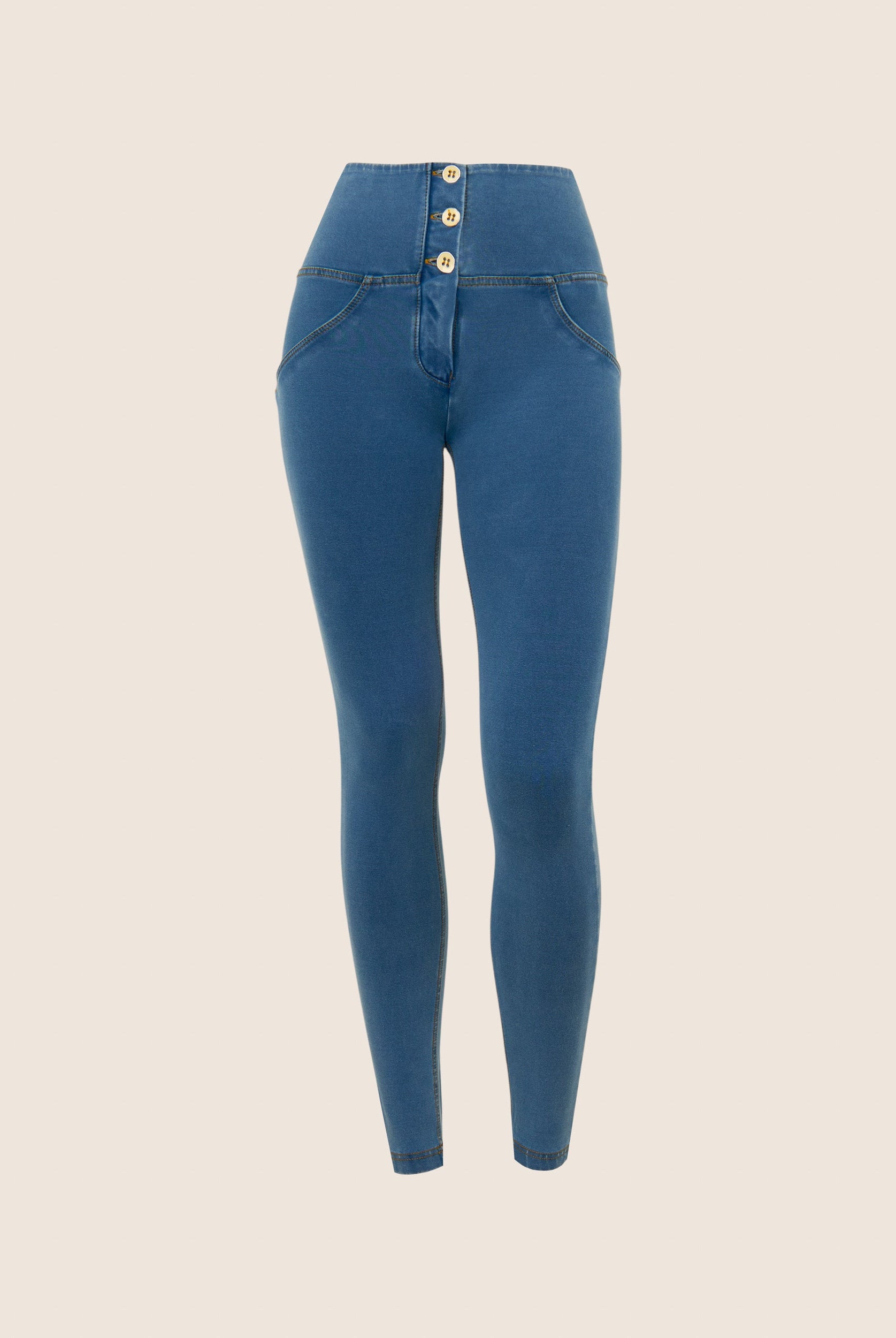 Hosen in Denim-Optik kombinieren den Stil von Jeans mit dem Komfort von Leggings. Unsere Denims sitzen wirklich wie eine zweite Haut und betonen dabei deine natürlichen Kurven. Obwohl diese Jeggings wie echte Jeans aussehen, sind sie extrem elastisch und genauso bequem wie deine Lieblingsleggings. Dank des Silikonbundes an der Taille rutscht die Hose nicht, und du brauchst keinen Gürtel. Eine Jeanshose ist eine echte Alleskönnerin, die du immer und überall tragen kannst. Wir bieten unsere Denims in zahlreichen Farben und mit unterschiedlichen Details, so dass du genau den perfekten Style für dich findest. Ob in voller Beinlänge oder Knöchellänge, mit hoher oder niedriger Leibhöhe, Freddys sitzen immer perfekt!
