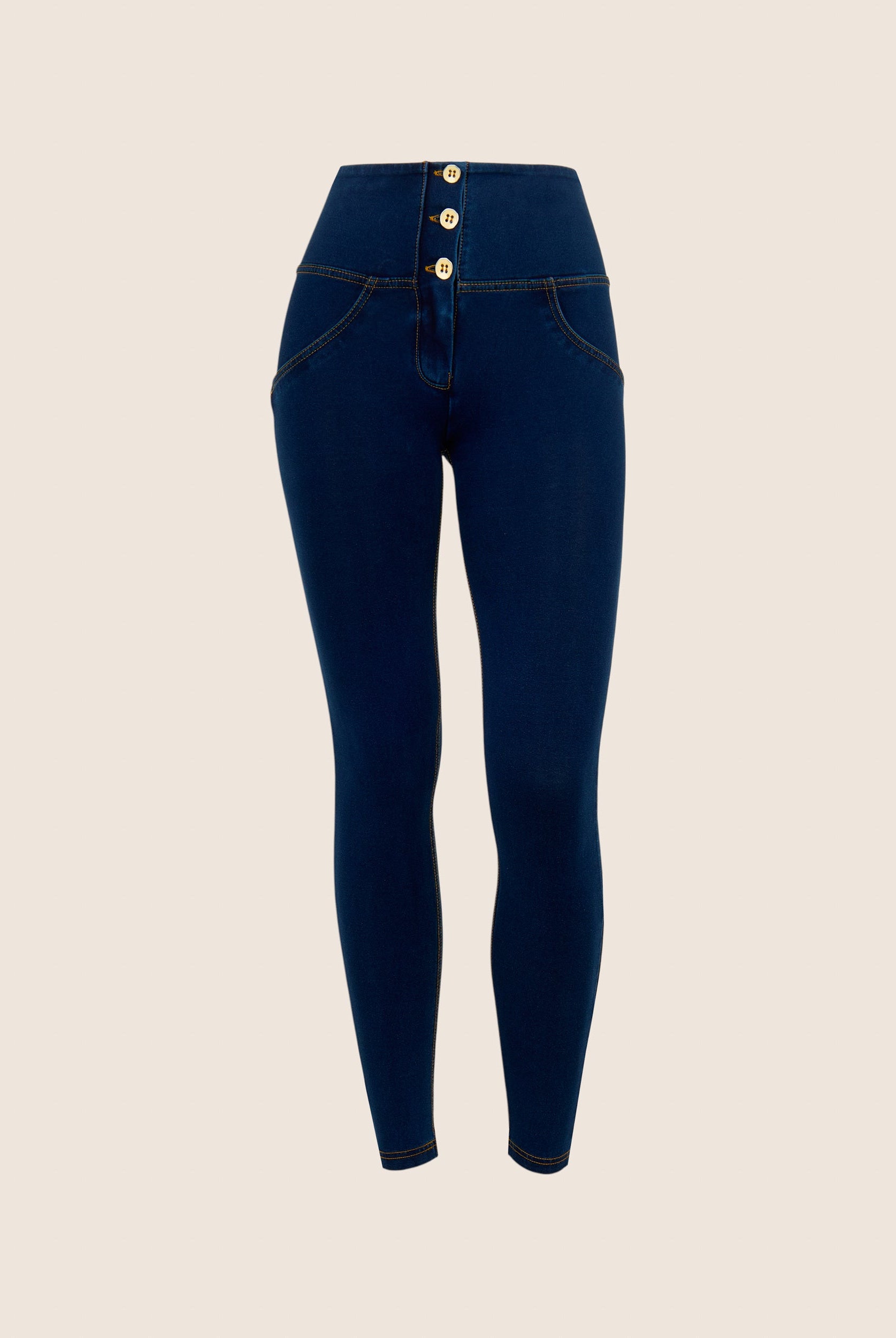Hosen in Denim-Optik kombinieren den Stil von Push up Jeans mit dem Komfort von Leggings. Unsere Denims sitzen wirklich wie eine zweite Haut und betonen dabei deine natürlichen Kurven. Obwohl diese Jeggings wie echte Jeans aussehen, sind sie extrem elastisch und genauso bequem wie deine Lieblingsleggings. Dank des Silikonbundes an der Taille rutscht die Hose nicht, und du brauchst keinen Gürtel. Eine Jeanshose ist eine echte Alleskönnerin, die du immer und überall tragen kannst. Wir bieten unsere Denims in zahlreichen Farben und mit unterschiedlichen Details, so dass du genau den perfekten Style für dich findest. Ob in voller Beinlänge oder Knöchellänge, mit hoher oder niedriger Leibhöhe, Freddys sitzen immer perfekt!