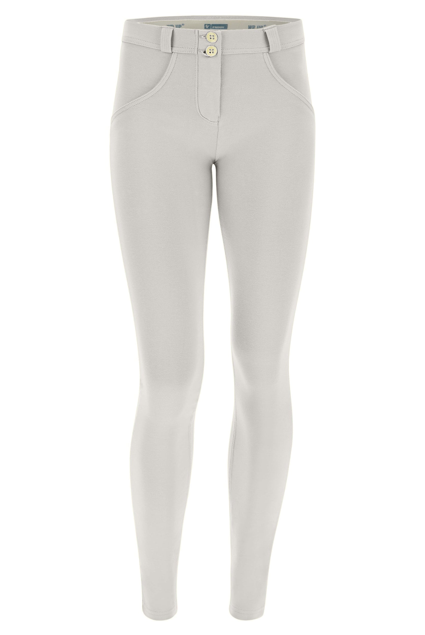 Die Mid-Waist-Modelle sitzen zwischen der Taille und dem Bauchnabel. Alle unsere mittlere Jeans haben vorne drei Freddy-typische Knöpfe. Sie sind etwas höher als unsere Regular-Waist-Hosen, aber nicht ganz so hoch, wie die High-Waist-Modelle. Sie haben einen bequemen, hohen Bund ohne Silikonstreifen, und die Knöpfe sorgen für einen perfekten Sitz. Jeans in Mid Waist eignen sich vor allem für kurvigere Frauen, die mehr Stütze und Form für den Bauch und die Taille möchten. Zusätzlich zaubern die Hosen natürlich den perfekten Po.