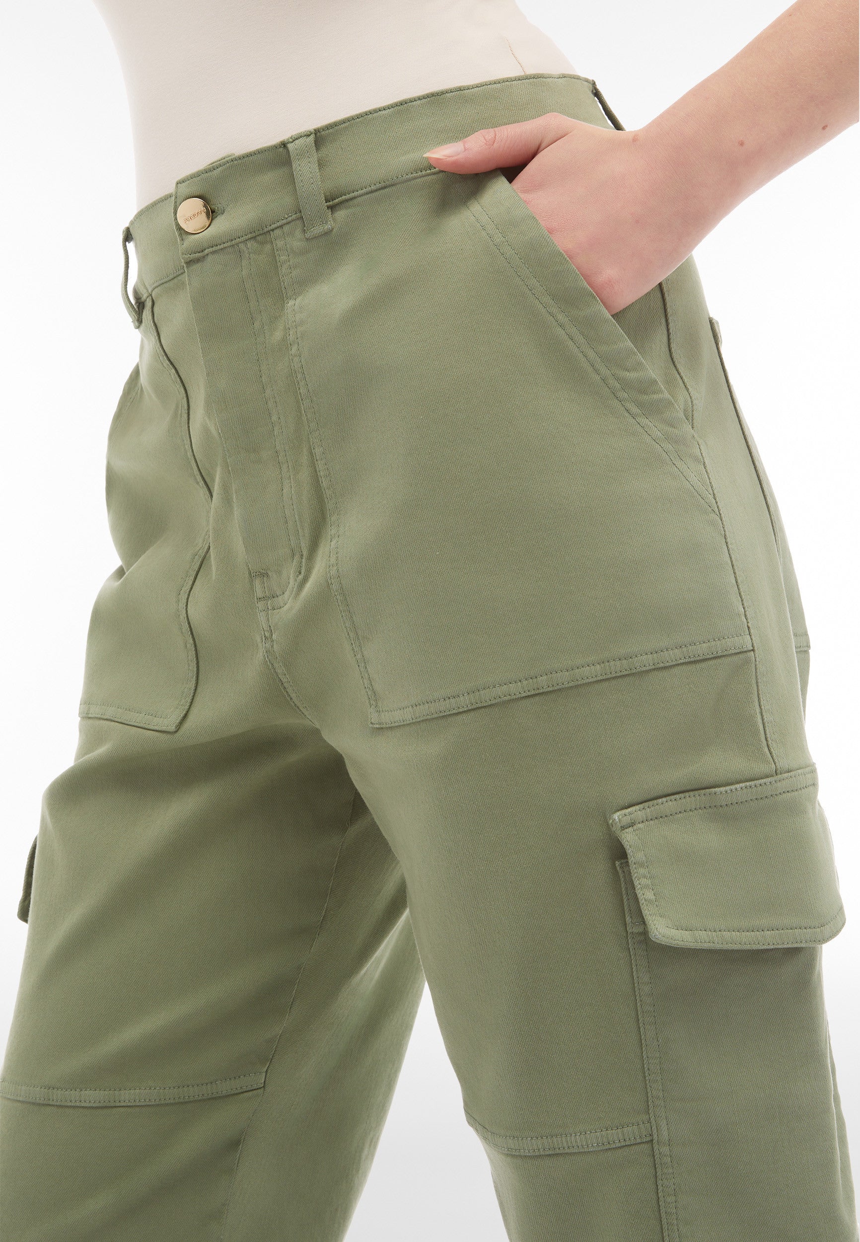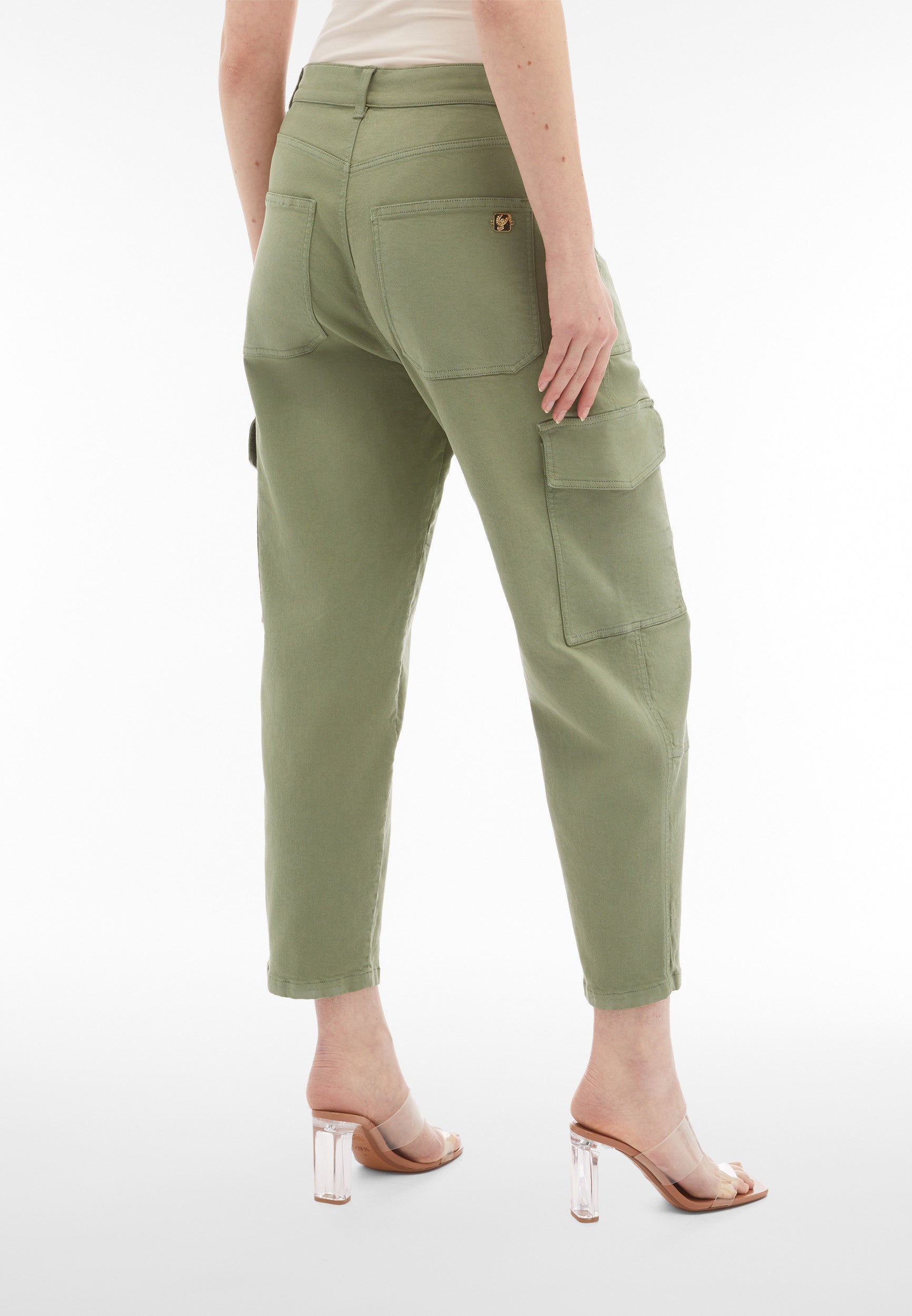 The Fit Jeans Pants in Green combine iconic Freddy style with exceptional comfort. This piece impresses with a timeless straight leg for classic versatility. Adding to that is a flattering high waist that offers gentle support. The look is completed by a sporty 3/4 length, ideal for warmer days or showing off footwear. Crafted designed in a trendy cargo style with functional pocket details and designed with a stretch denim-effect material for authentic style and easy movement. Your go-to piece for days when you just want to feel great.