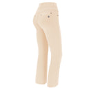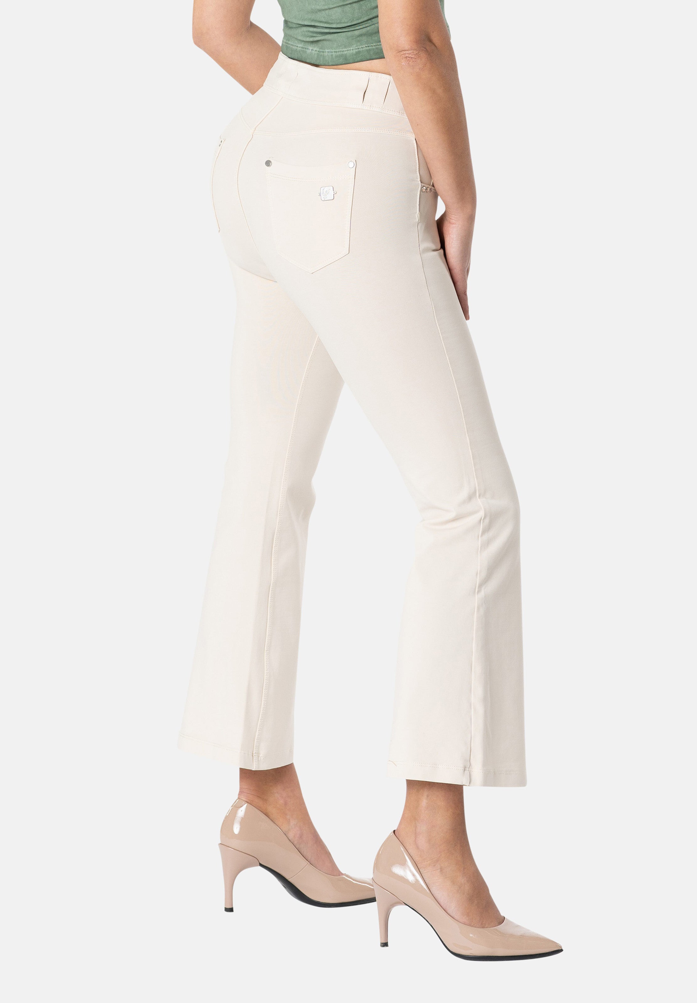 NOW® Pants in Beige: designed to flatter and move with you. They feature a modern 7/8 length that subtly highlights your ankles. Adding to that is a comfortable mid waist for everyday ease. The look is completed by an elegant flare cut that visually elongates the legs. Crafted from a adaptable stretch material for easy wear and flexibility. Belonging to the NOW® collection, these pants prioritize ultimate comfort and freedom, moving effortlessly with you. Italian design that radiates confidence and style.