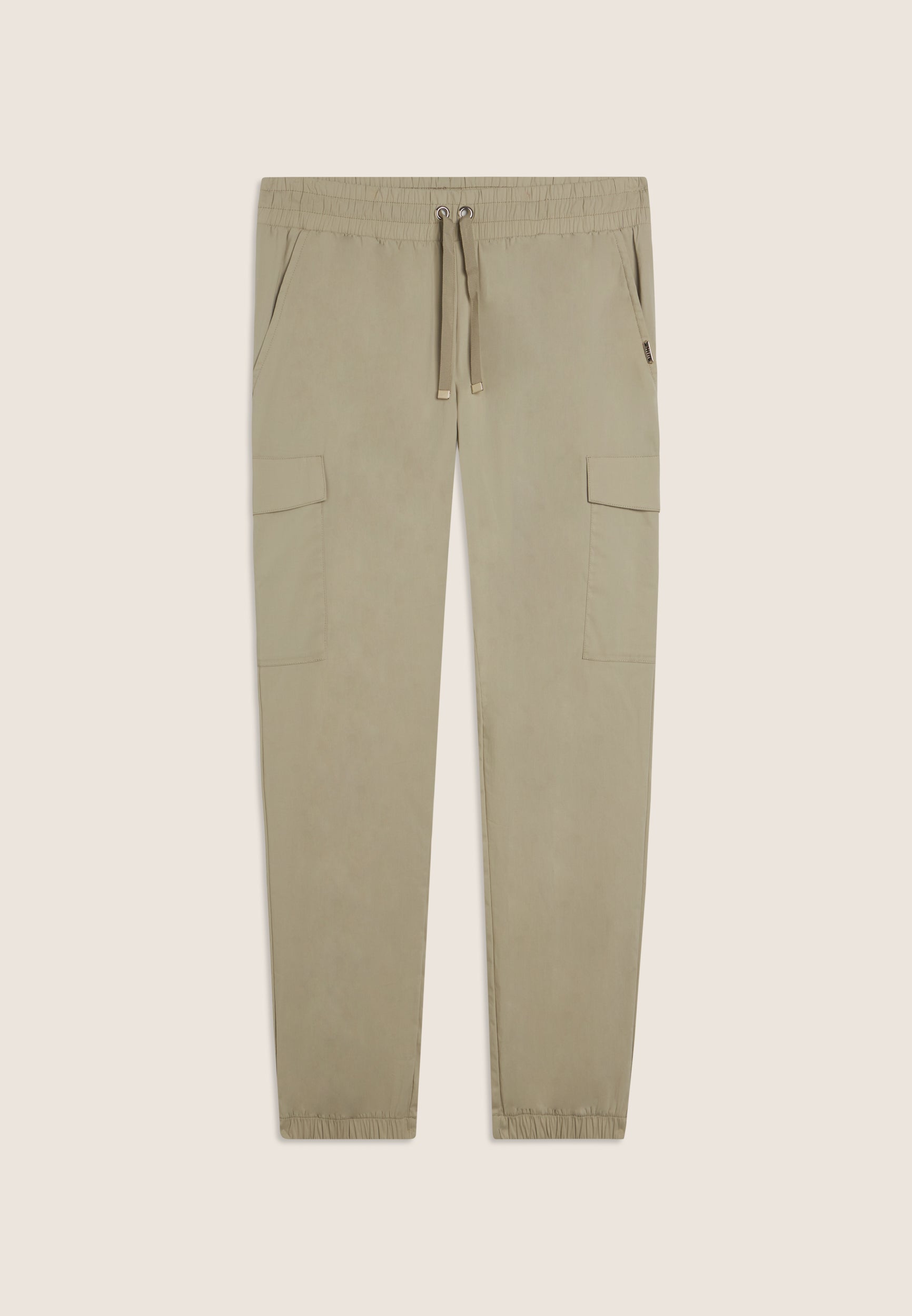 Regular-fit cargo trousers with a regular waist and drawstring and inner elastic for a gathered effect. The bottom is finished with internal elastic. Side flap pockets on the outer thighs and slant besom pockets add functionality and style. An exclusive detail is the golden FREDDY logo tab on the left pocket opening. Made of stretch poplin, these trousers are light and easy to wear, offering a perfect combination of comfort and sophistication.