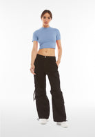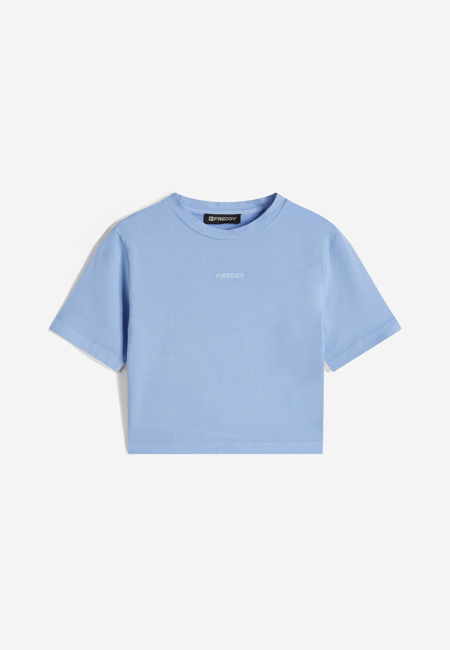 Elevate your wardrobe with the Top in Blue. In a trendy cropped cut. Crafted from a soft jersey knit with added stretch for flexibility. Feel comfortable and look great, whatever your day holds.