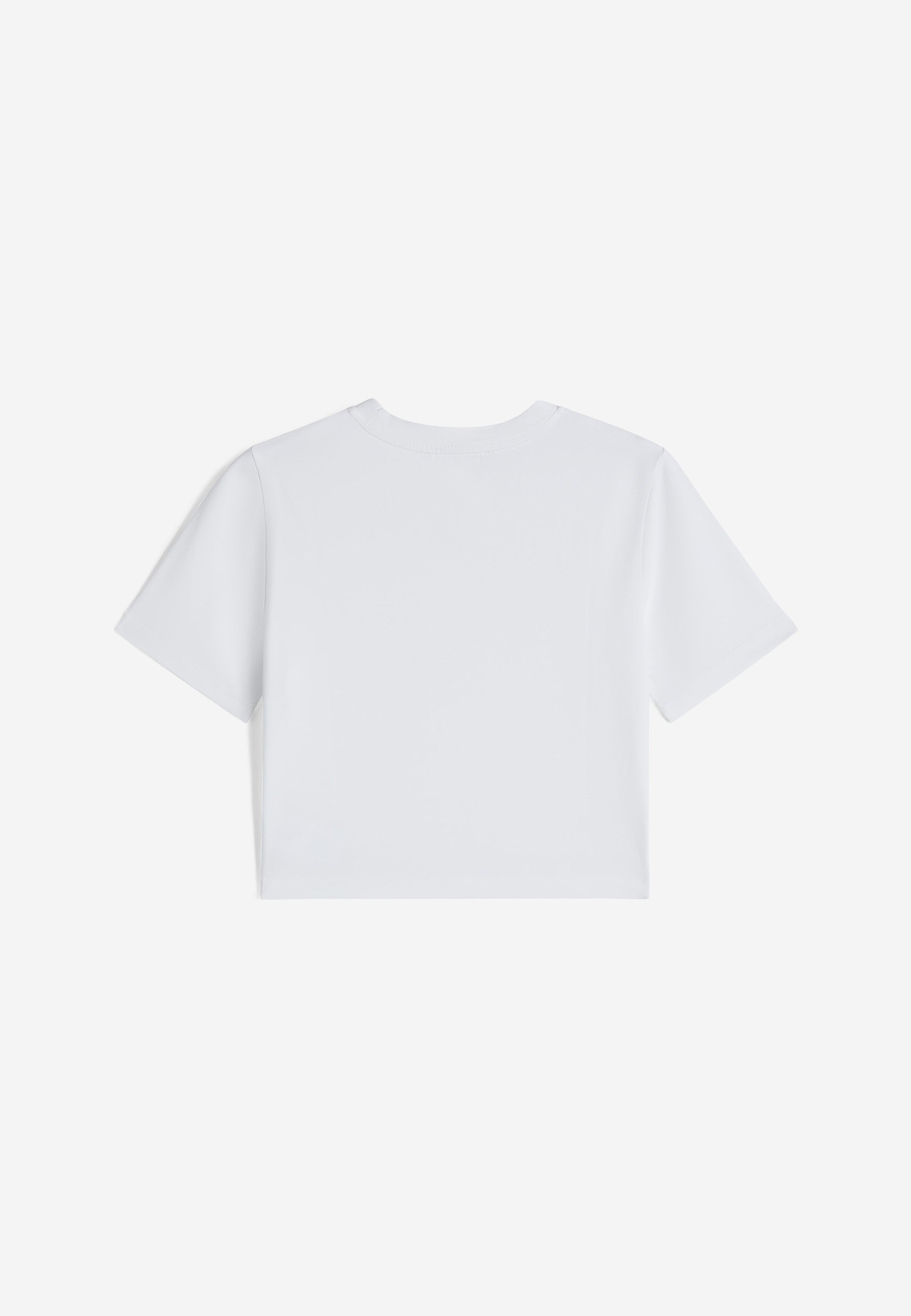 This Top in White is your perfect partner for workouts and leisure. As a fashionable crop top. Crafted from a soft jersey knit with added stretch for flexibility. Feel comfortable and look great, whatever your day holds.