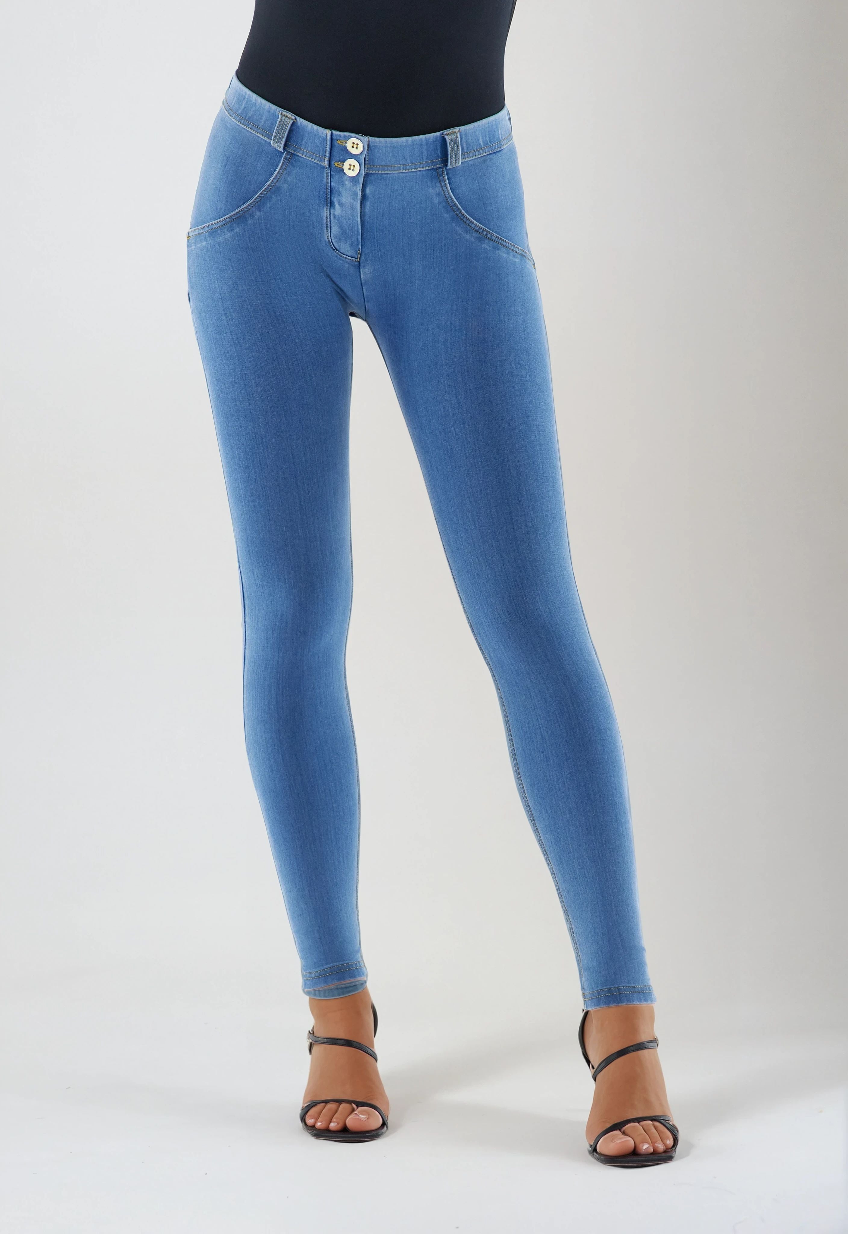 Freddy WR.UP® Damen Push-Up Jeans - Regular Waist Skinny - Hellblau - Gelbe Nähte