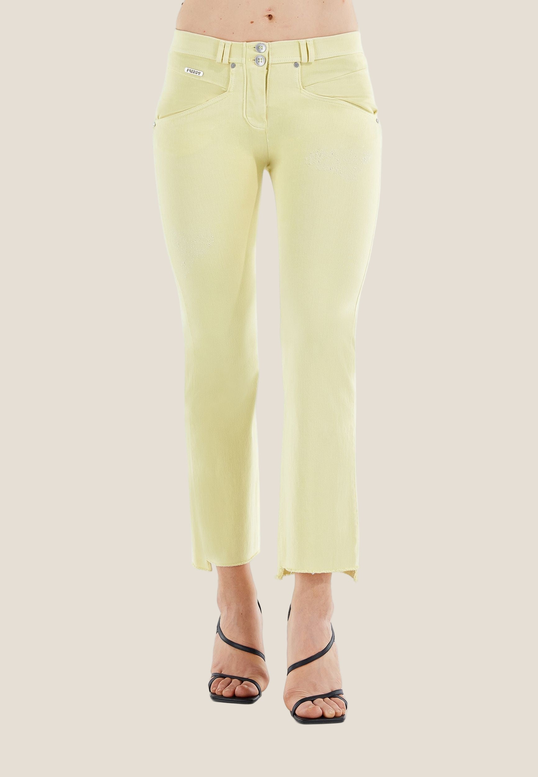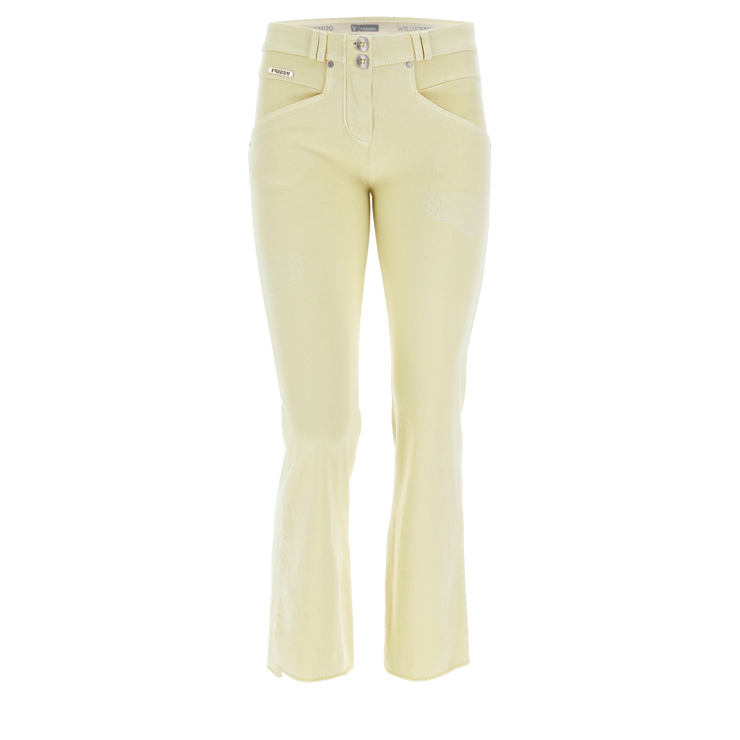 Freddy WR.UP® Snug Damen Push-Up Hose - 7/8 Regular Waist Raw-Cut Flare - Helles Gelb - Y910