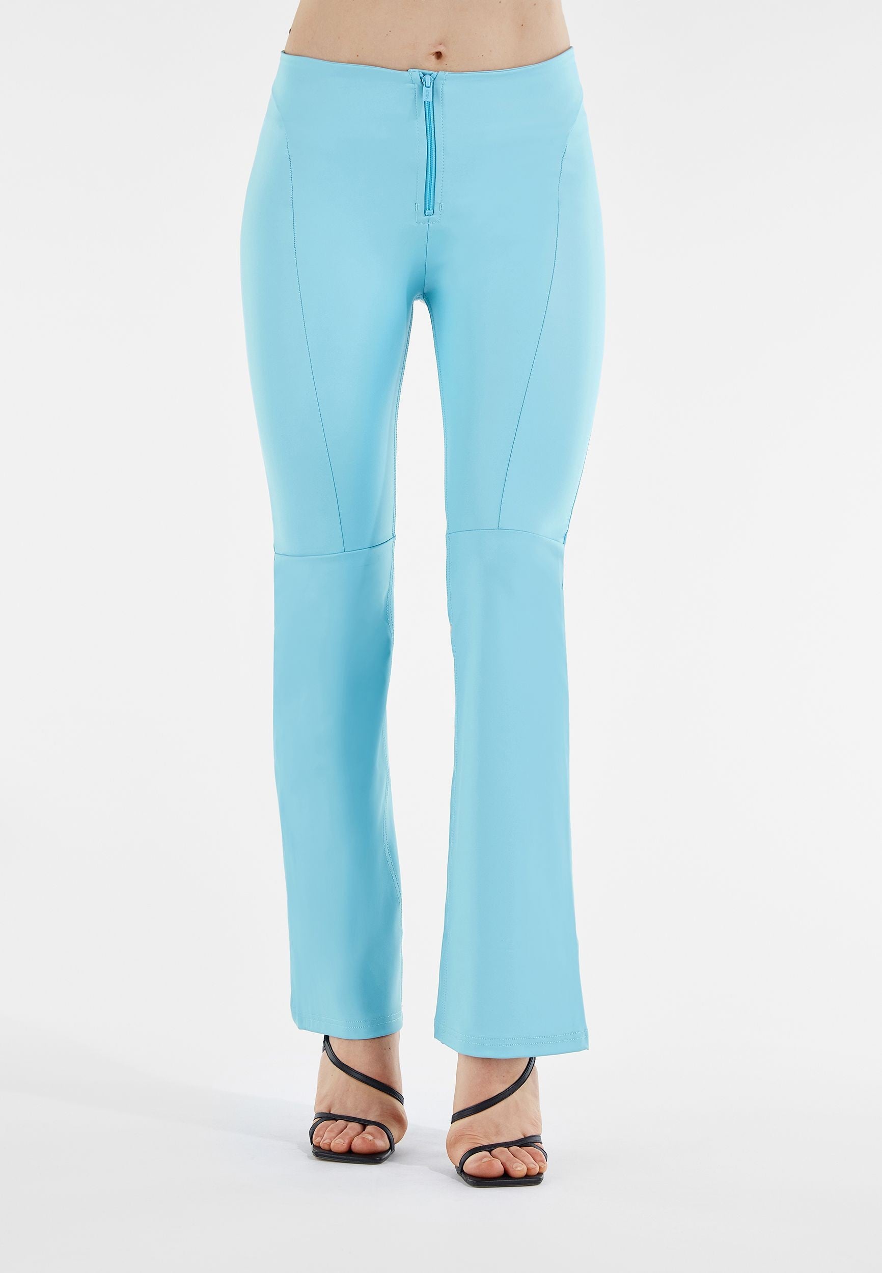 Freddy WR.UP® Vegan Leather Damen Push-Up Lederhose - High Waist Flare - V-Schnitt - Türkis - T410