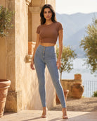WR.UP Push-Up Button High Waist Skinny Denim Jeans - Denim Light Blue - Yellow Seam