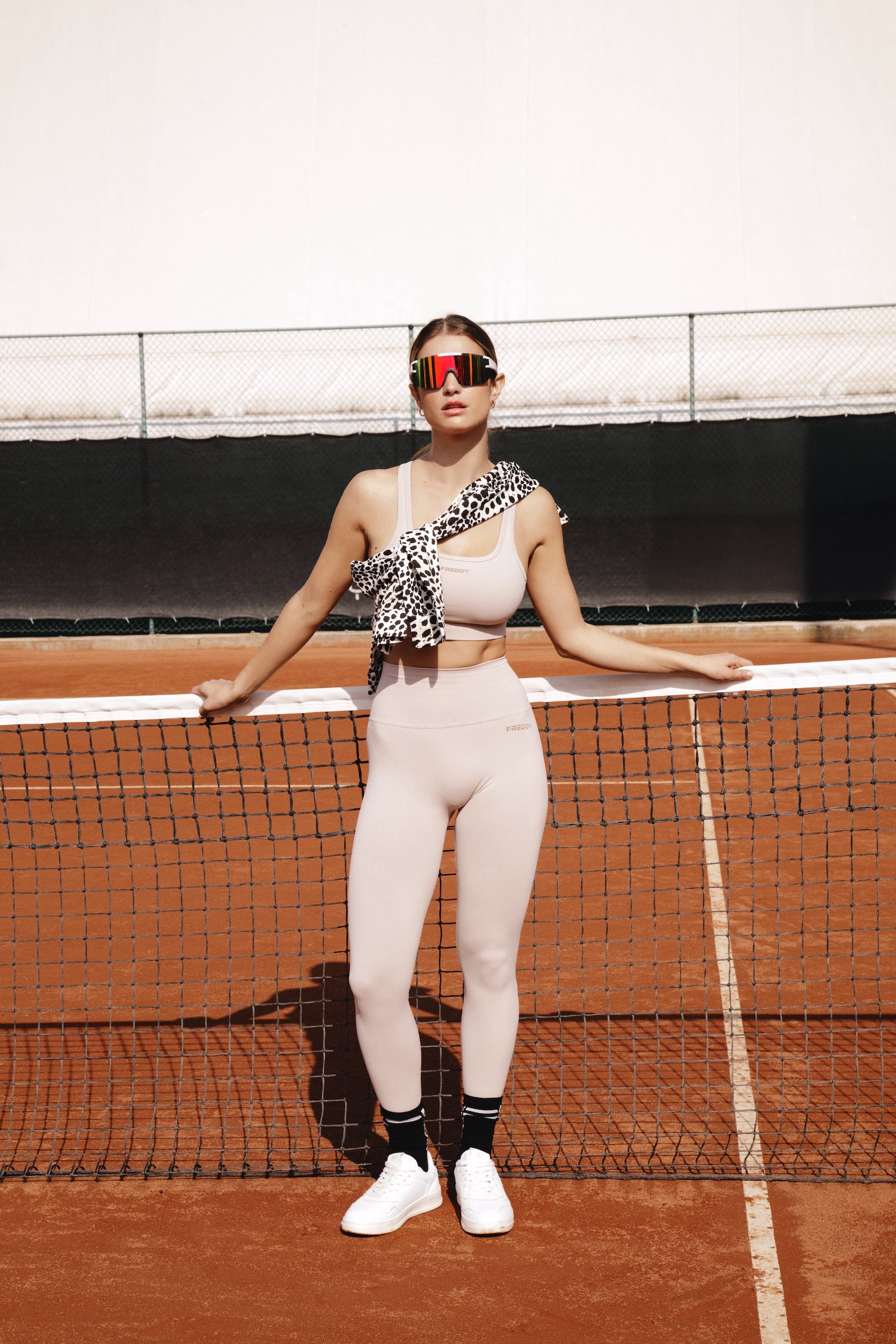 Sports leggings with 7/8 length and skinny leg, made from seamless ribbed fabric for absolute comfort. The very high waist guarantees a stable hold during training, while the heart-shaped seams on the buttocks naturally enhance the shape. Finished with a FREDDY logo on the front and “small man” logo on the back.