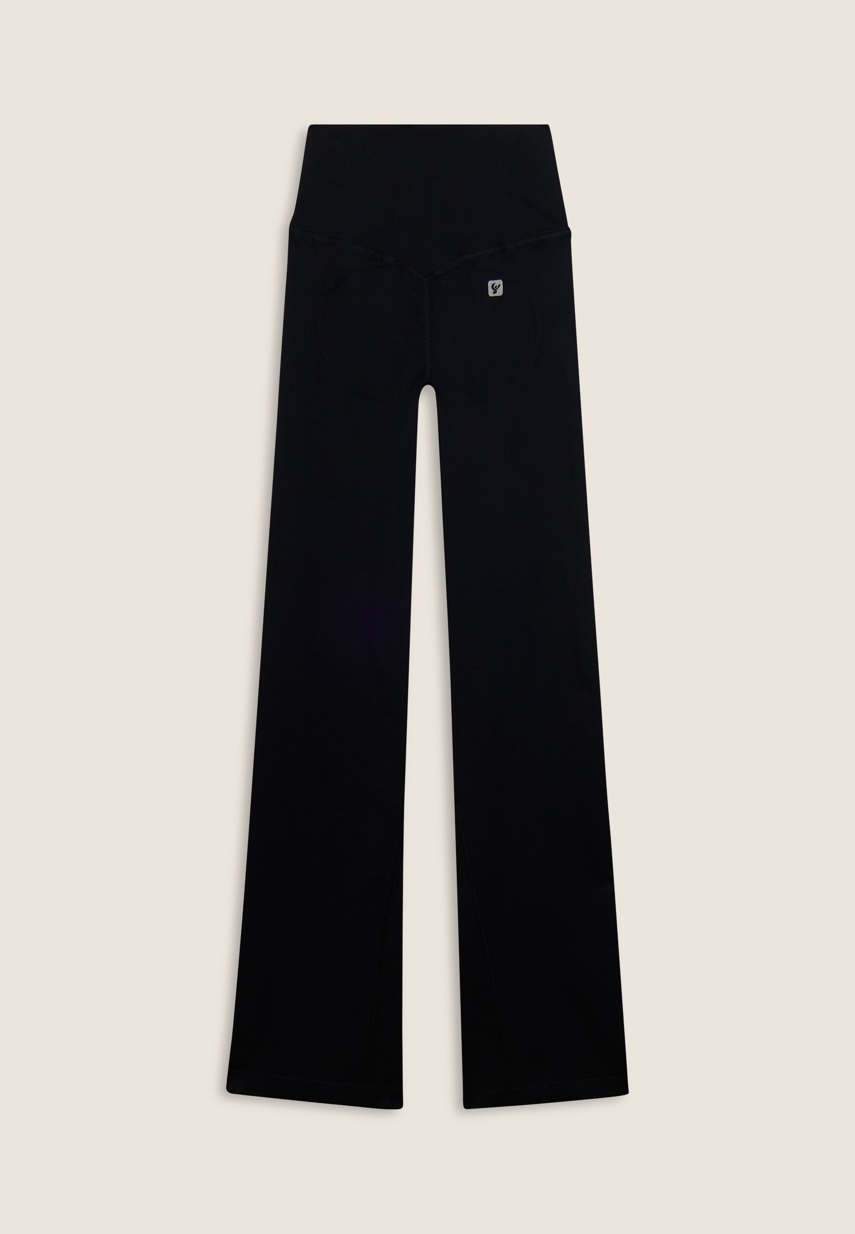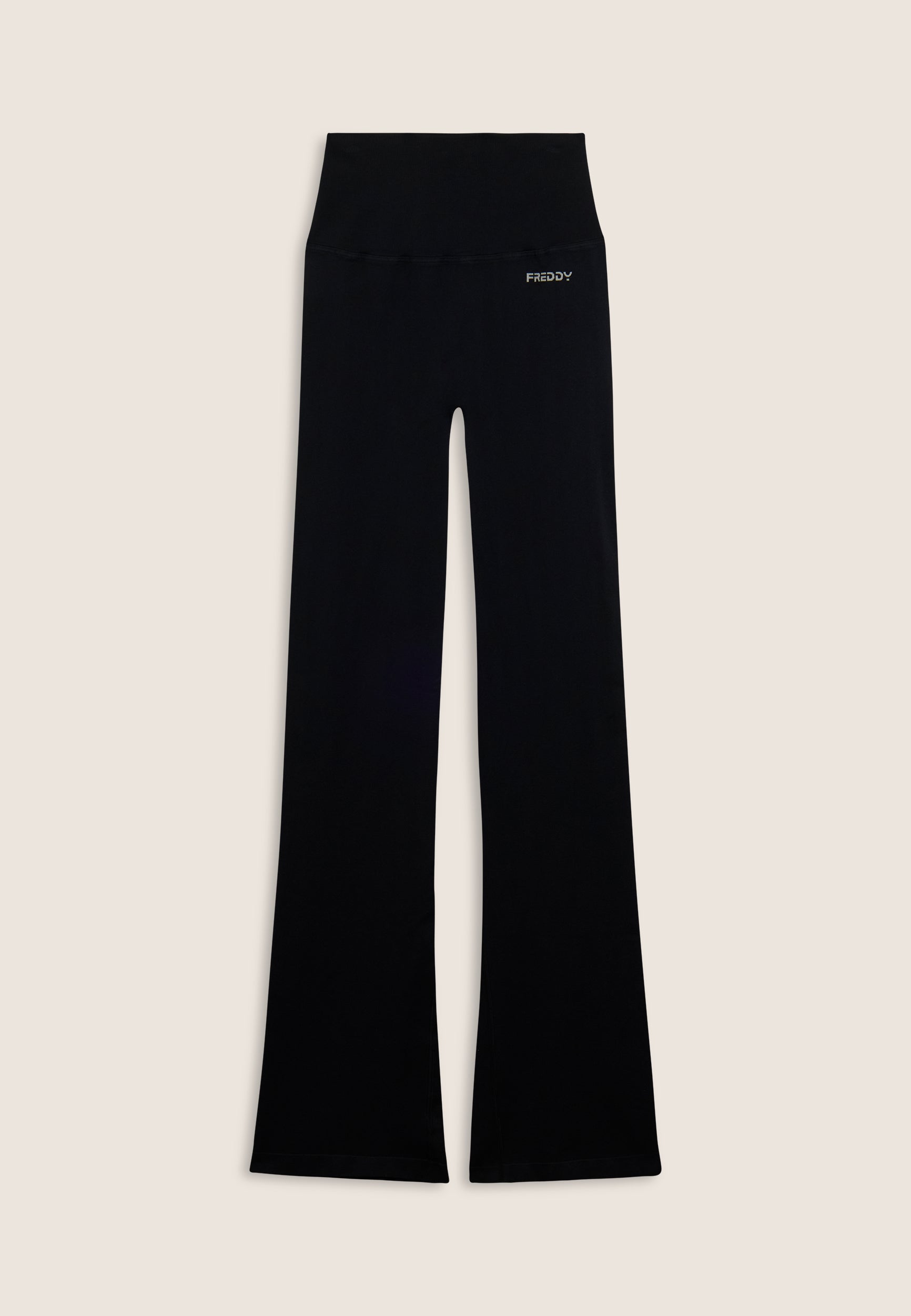 Feminine and modern in style, these regular leggings with flared bottoms are made from breathable jersey fabric for comfort and performance. The very high waist in seamless ribbed fabric gives support, while the heart-shaped seams at the back provide a shaping fit.