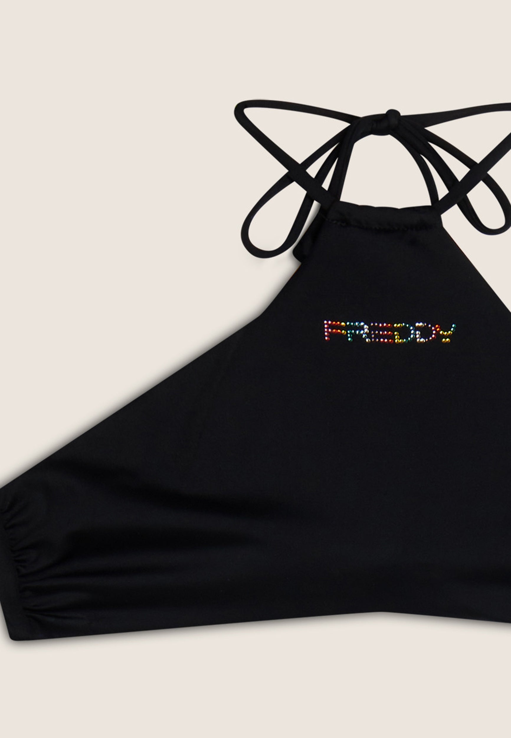 Strassikivikoristeinen logollinen bikini yläosa - BLACK