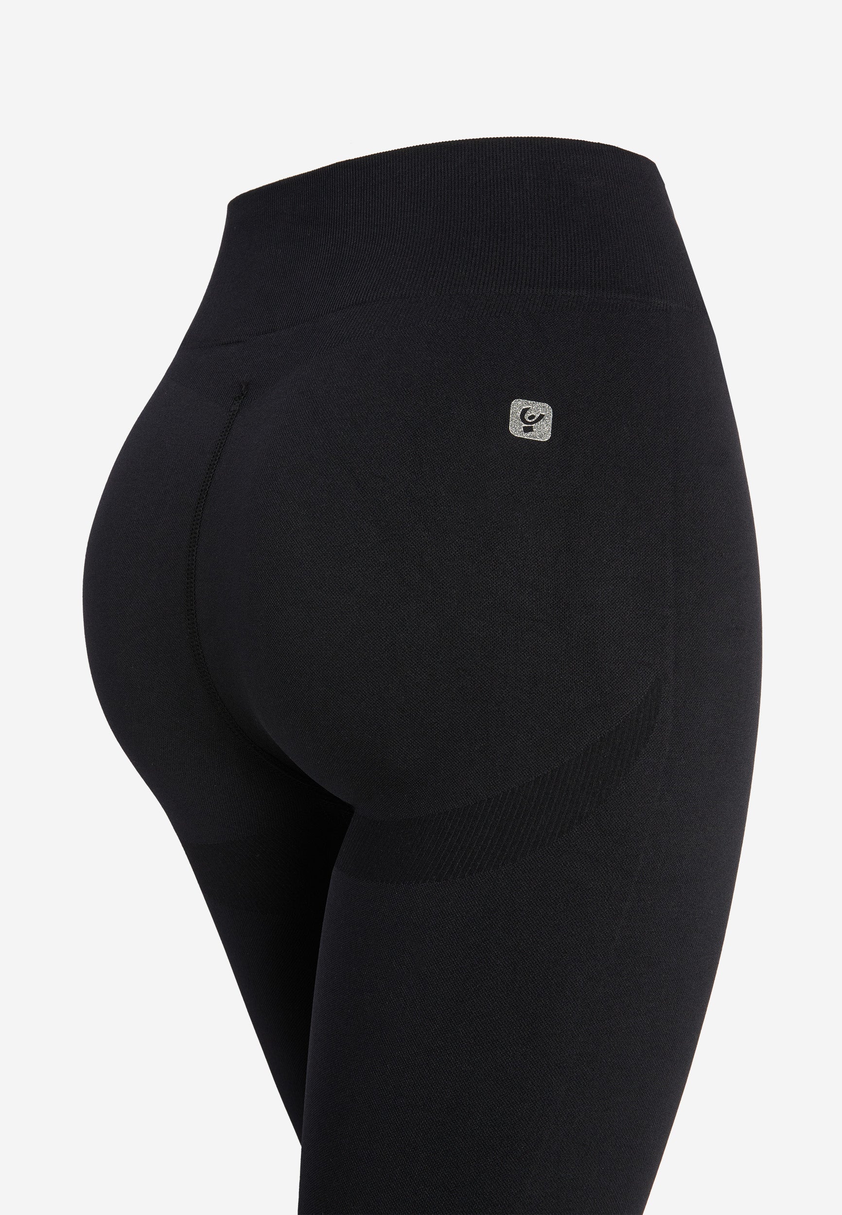 This style has a high ribbed waistband to a no-slip fit as you move, and ribbed cuffs. At the rear, the heart-shaped design of the yoke and ribbed inserts naturally shape and support your curves. The metallic logo printed on the right rear hip and the small FREDDY jacquard logo on the left front hip complete the list of stylish details.