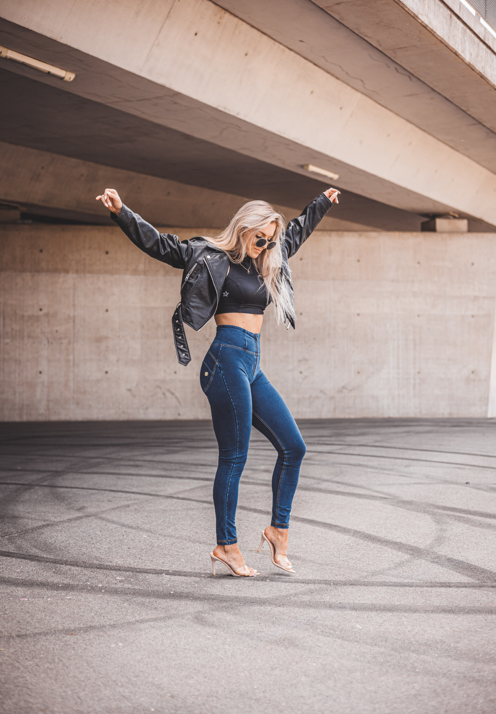 WR.UP Push-Up High Waist Skinny Denim Jeans - Denim Black - Black Seam