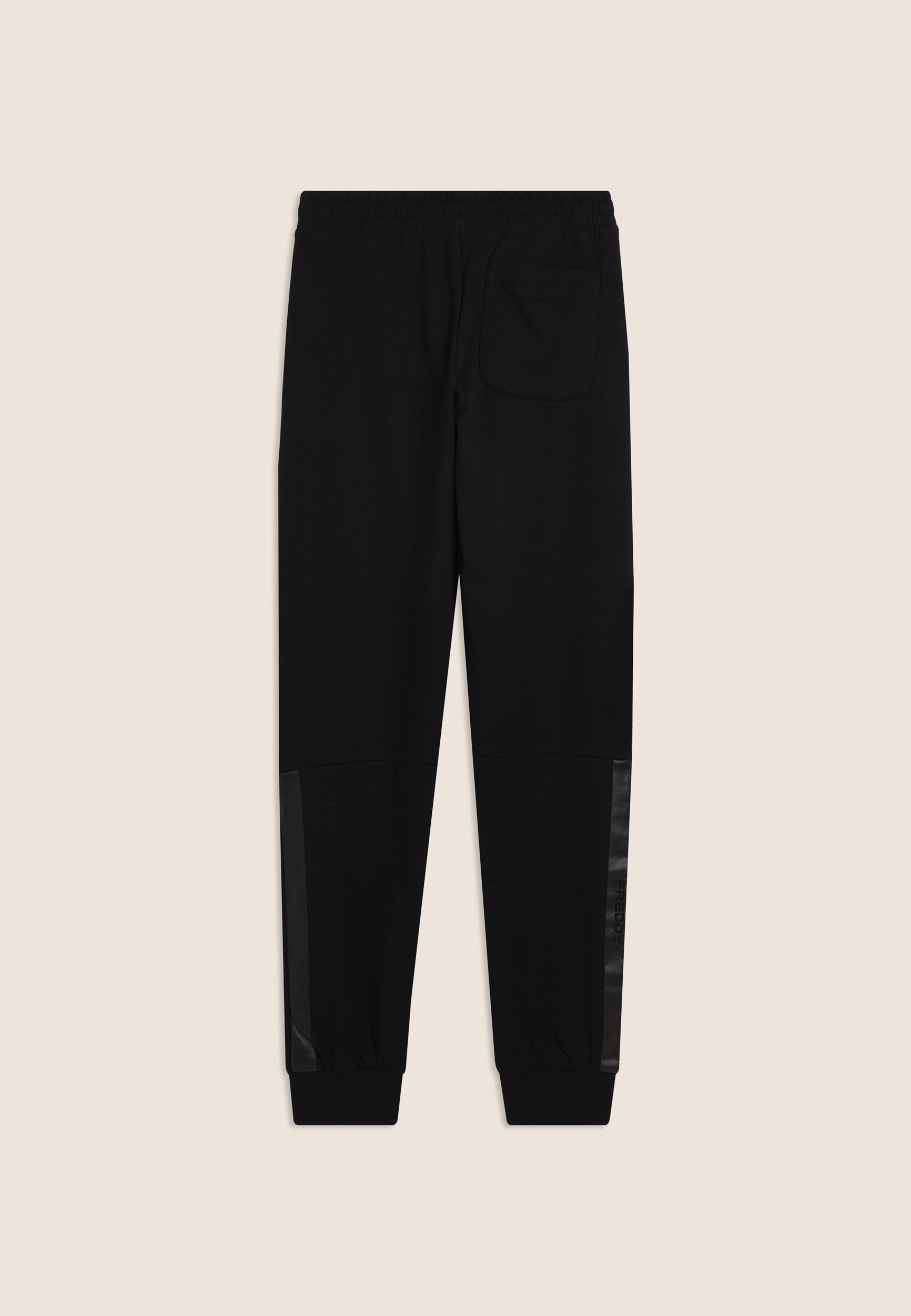 Men's athletic trousers in a regular fit and length, made of baby French Terry for maximum comfort. They feature a regular waist with inner elastic and drawstring for a customised fit, regular legs with panel stitching, and a ribbed cuff hem that enhances the line of the garment. Tone-on-tone side bands run from below the knee to the bottom of the leg, and the rubberised logo print on the left hip adds a distinctive, technical touch. Slant besom pockets and a back patch pocket complete the garment, ideal for everyday use and sports activities.