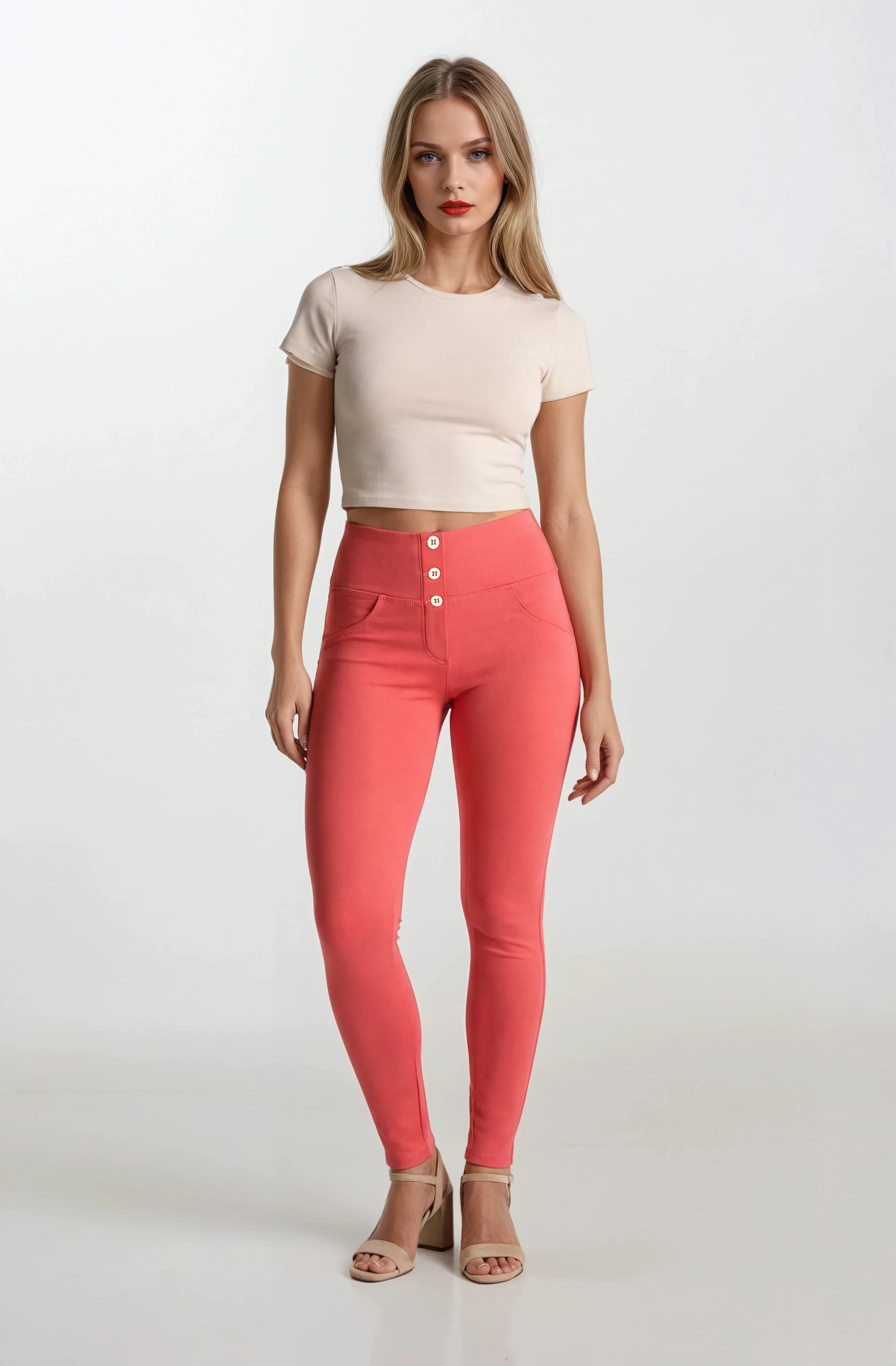 WR.UP Push-Up Button High Waist Skinny Flex Tech Leggings - Cayenne Red