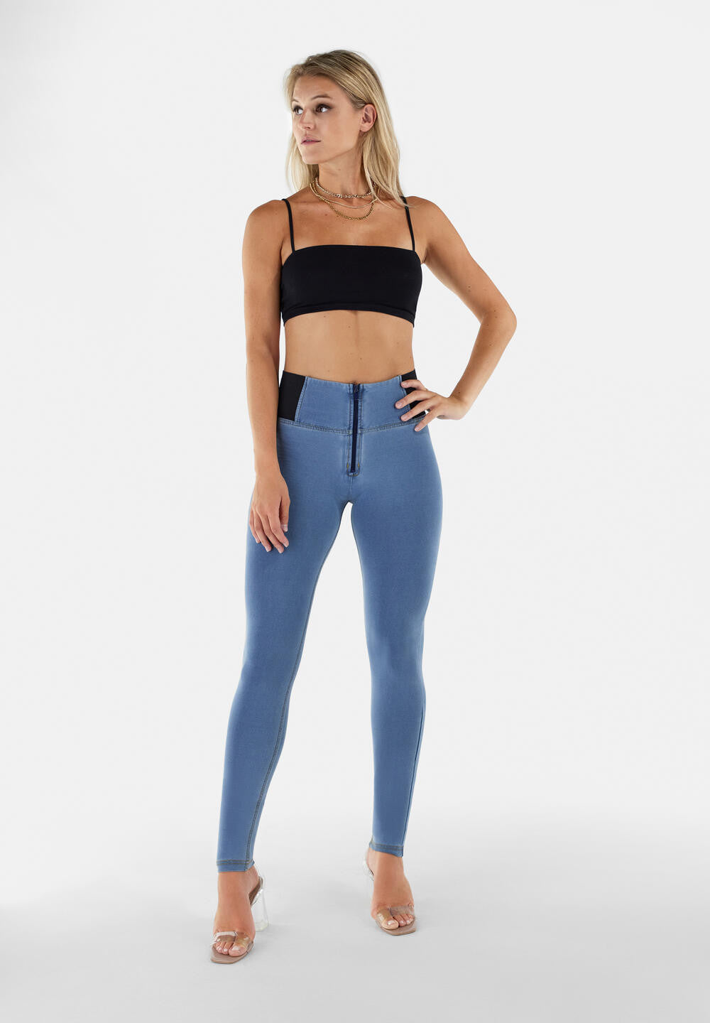WR.UP® Pants i Blå: designade för att smickra och följa dina rörelser. Detta plagg utmärker sig med med en tidlös hellängd, perfekt för alla säsonger. Därtill kommer en slank skinny-passform som smiter åt runt dina kurvor. Looken avrundas med en smickrande hög midja som ger skönt stöd. Designade med ett stretchigt denim-effektmaterial för autentisk stil och enkel rörelse. Som en del av WR.UP®-kollektionen har de patenterad teknologi designad för att naturligt framhäva och forma din silhuett. Perfekta för otaliga tillfällen, från avslappnat till uppklätt.